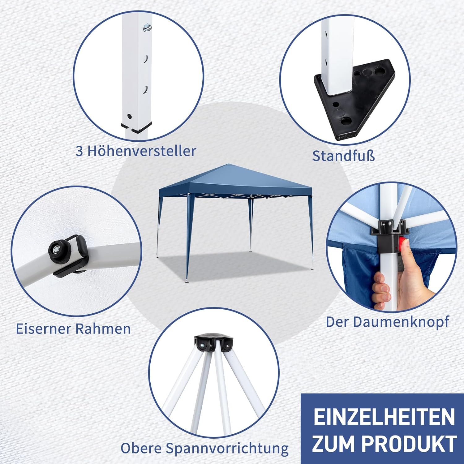 [Structure de haute qualité]-La tonnelle de jardin aluminium est faite d’une armature en acier résistant à la rouille et à la corrosion,ce qui la rend plus durable et sa couverture est faite d’une toile Oxford de haute qualité,qui peut bloquer les rayons UV nocifs du soleil, et réduire la chaleur à l’intérieur.En outre, les piquets de terre en métal et la corde fournissent la durabilité et la stabilité pour chaque événement en plein air