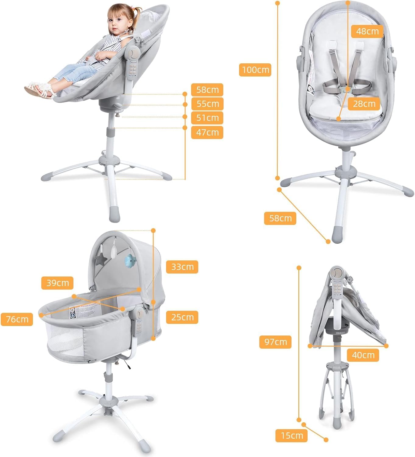 4en1:Berceau,Balancelle,Chaise Hte,Transat