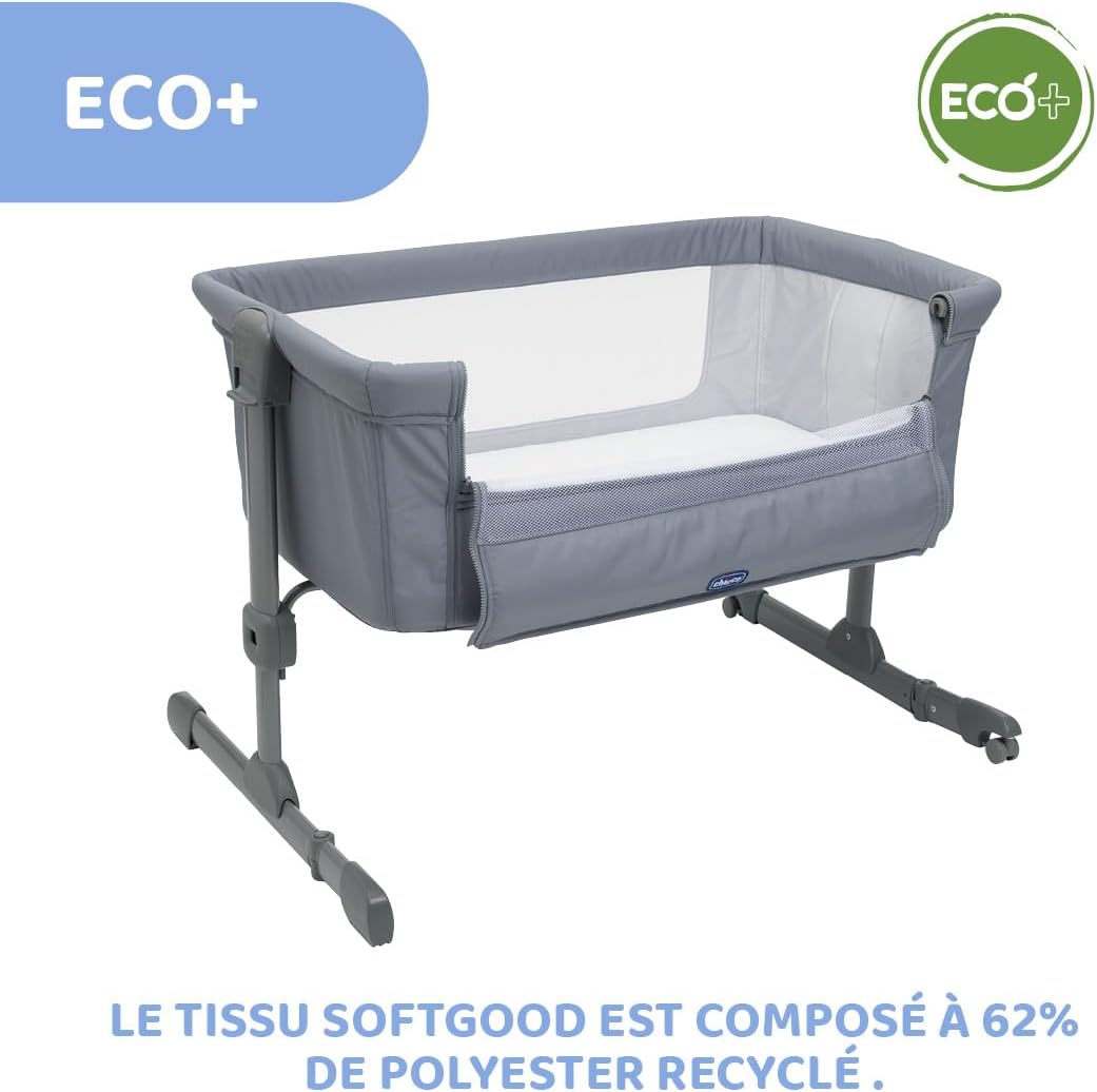 NEXT2ME ESSENTIAL : Le berceau cododo Chicco, fabriqué en polyester recyclé (62%), qui permet aux parents de garder bébé près d’eux pendant la nuit et leur permettre de gérer facilement les réveils nocturnes