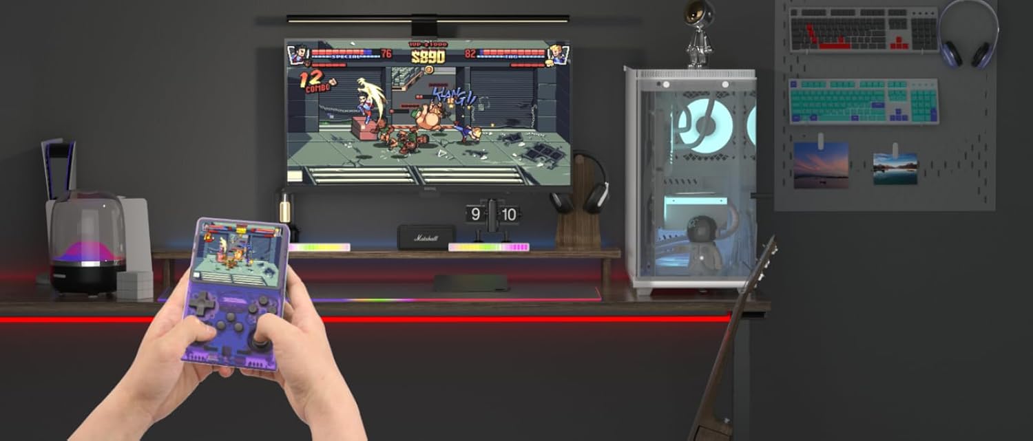 128 Go de stockageLa console portable est préinstallée avec plus de 20 000 jeux et prend en charge plus de 10 émulateurs. Avec sa capacité de stockage de 128 Go, vous pouvez profiter d’une immense bibliothèque de jeux et vous pouvez choisir d’insérer une carte TF supplémentaire pour étendre davantage votre collection de jeux.