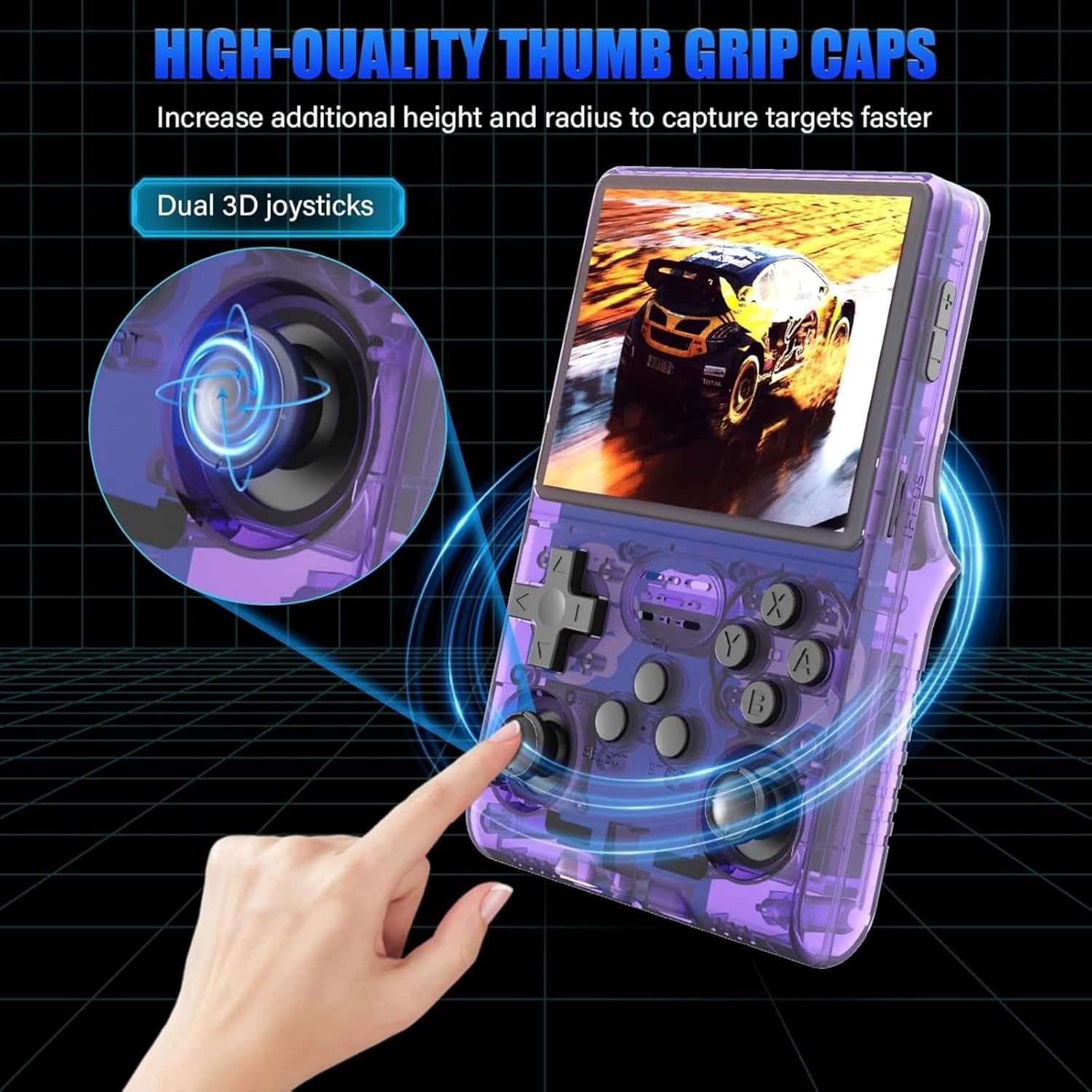 La R36S Pro est une console de jeu rétro hautes performances équipée d’un processeur RK3326 64 bits cadencé à 1,5 GHz et d’un processeur graphique double cœur Mali-G31MP. Dotée de 4 Go*2 de RAM DDR3L, elle offre une expérience de jeu fluide et réactive sur de nombreux émulateurs. Mesurant seulement 13 cm de long, 8 cm de large et 2,5 cm de haut, elle est compacte, légère et facile à transporter, vous permettant de profiter d’une expérience de jeu optimale à tout moment et en tout lieu. Cette mini console de jeu rétro est équipée d’un écran IPS haute résolution de 3,5 pouces (640 x 480) pour une qualité de rendu optimale. L’écran est en verre trempé renforcé pour une protection optimale. La batterie rechargeable de 3500 mAh offre jusqu’à 10 heures d’autonomie, idéale pour jouer en déplacement. Des boutons clairement identifiés et deux joysticks 3D vous offrent une expérience de jeu fluide. Avec sa capacité de stockage de 128 Go, vous pouvez profiter d’une immense bibliothèque de jeux et vous pouvez choisir d’insérer une carte TF supplémentaire pour étendre davantage votre collection de jeux.
