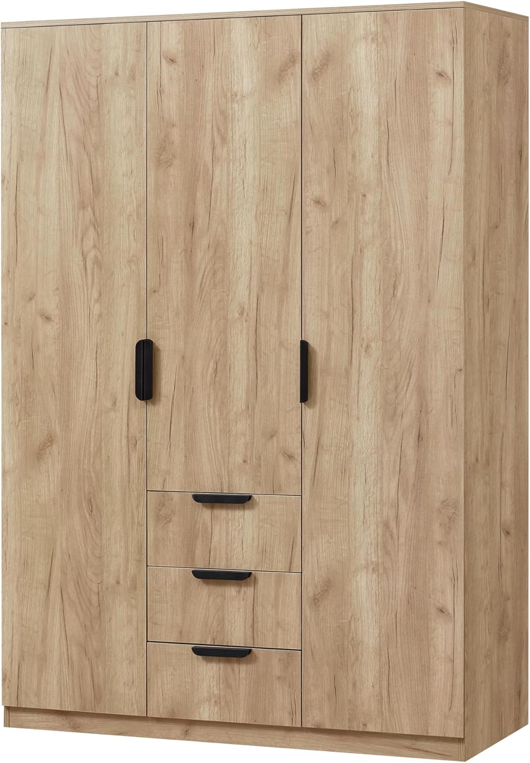 Notre penderie moderne et élégante est la réponse parfaite à vos besoins d’organisation pour vos vêtements et accessoires. Elle est équipée de deux barres de penderie idéale pour suspendre vos robes ou chemises, ainsi que 4 étagères et 3 tiroirs, offrant davantage de surfaces pour stocker vos t-shirts et pantalons pliés. Grâce à son design intemporel, cette armoire à trois portes se fond harmonieusement dans tous les styles, que ce soit dans la chambre ou dans le dressing.