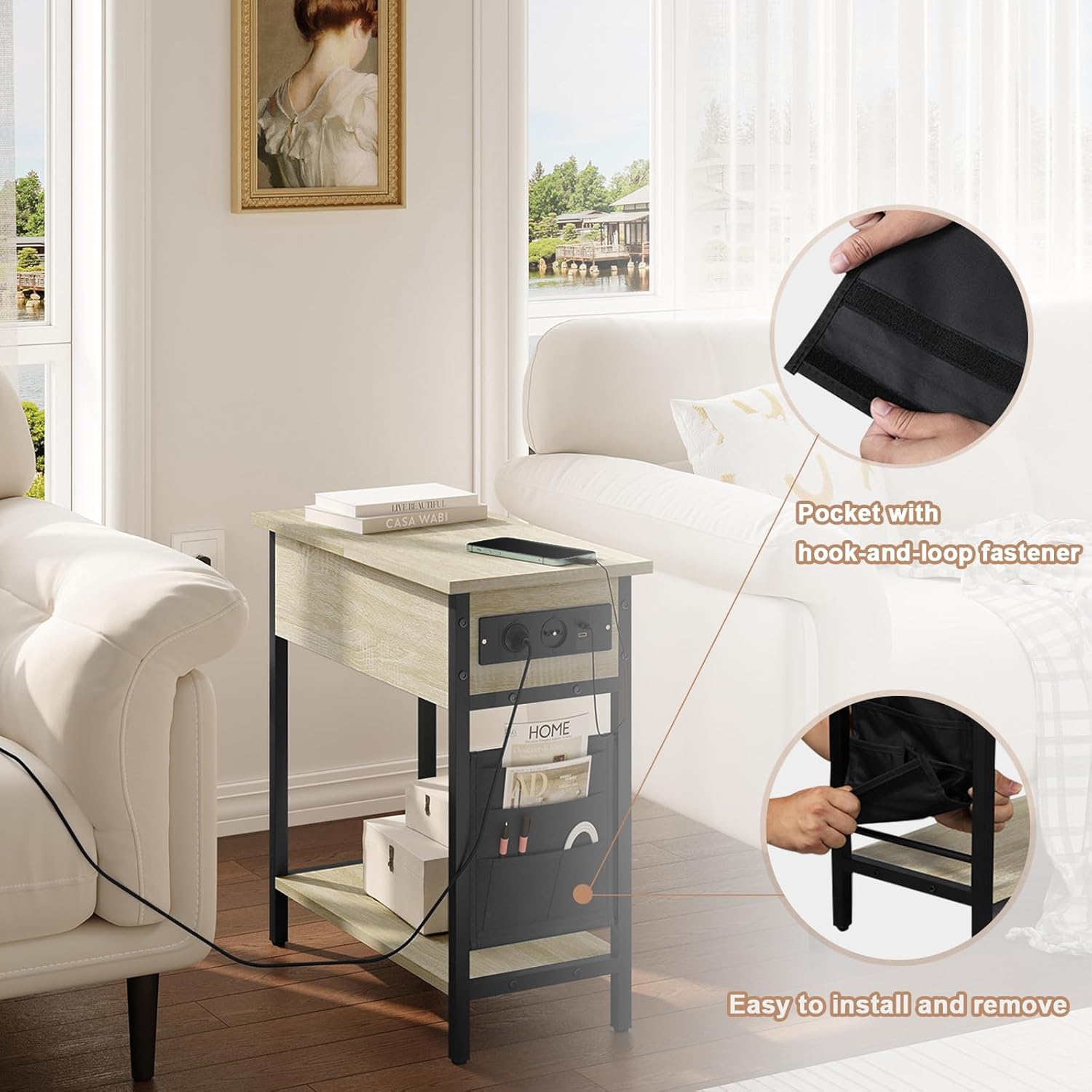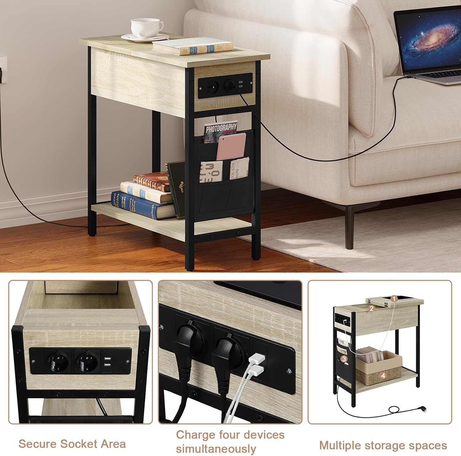 Table d’appoint avec multiprise : Avec 2 prises AC, 2 ports USB et 1 câble de 1,5m, la table d’appoint permet de charger simultanément plusieurs appareils, tels que portable, PC, lampe. L’écart raisonnable entre les prises ne gêne pas les adaptateurs