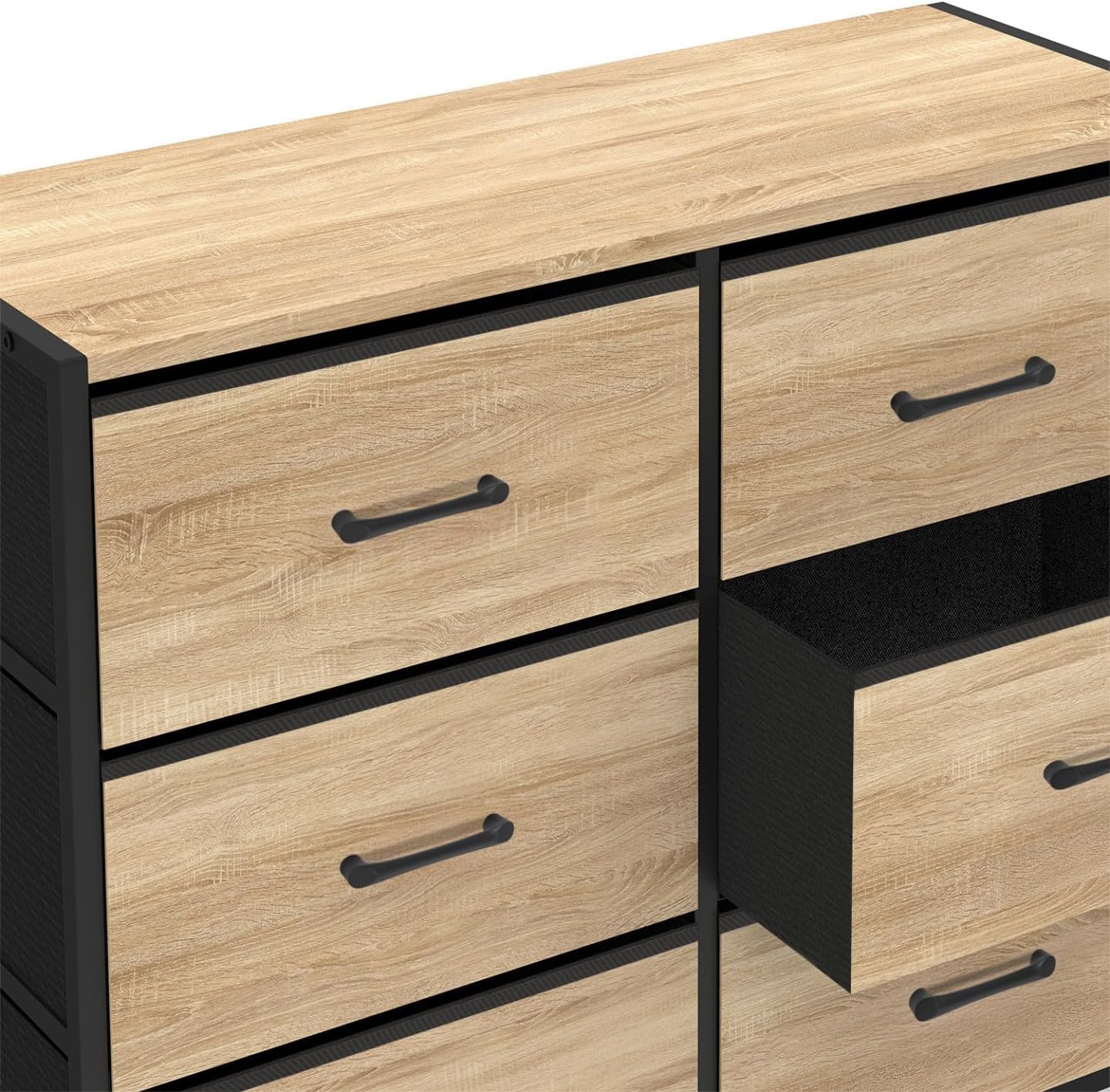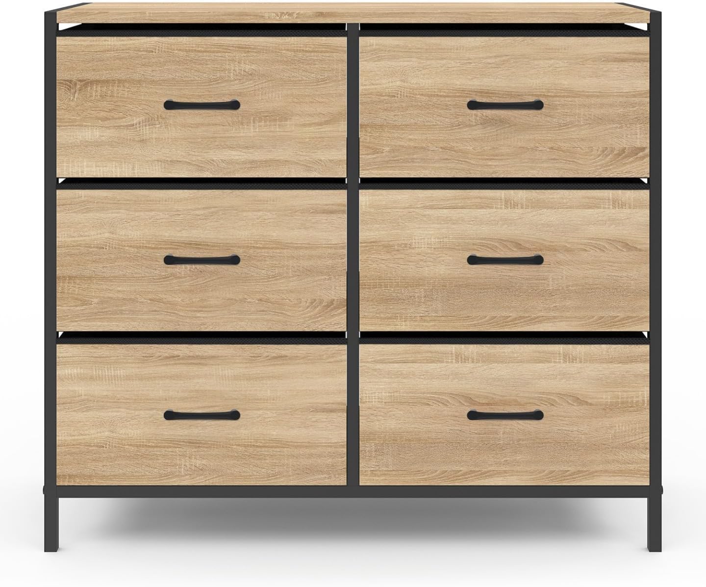 Commode 6 tiroirs UTAH bi-matière avec des tiroirs en tissu au style industriel