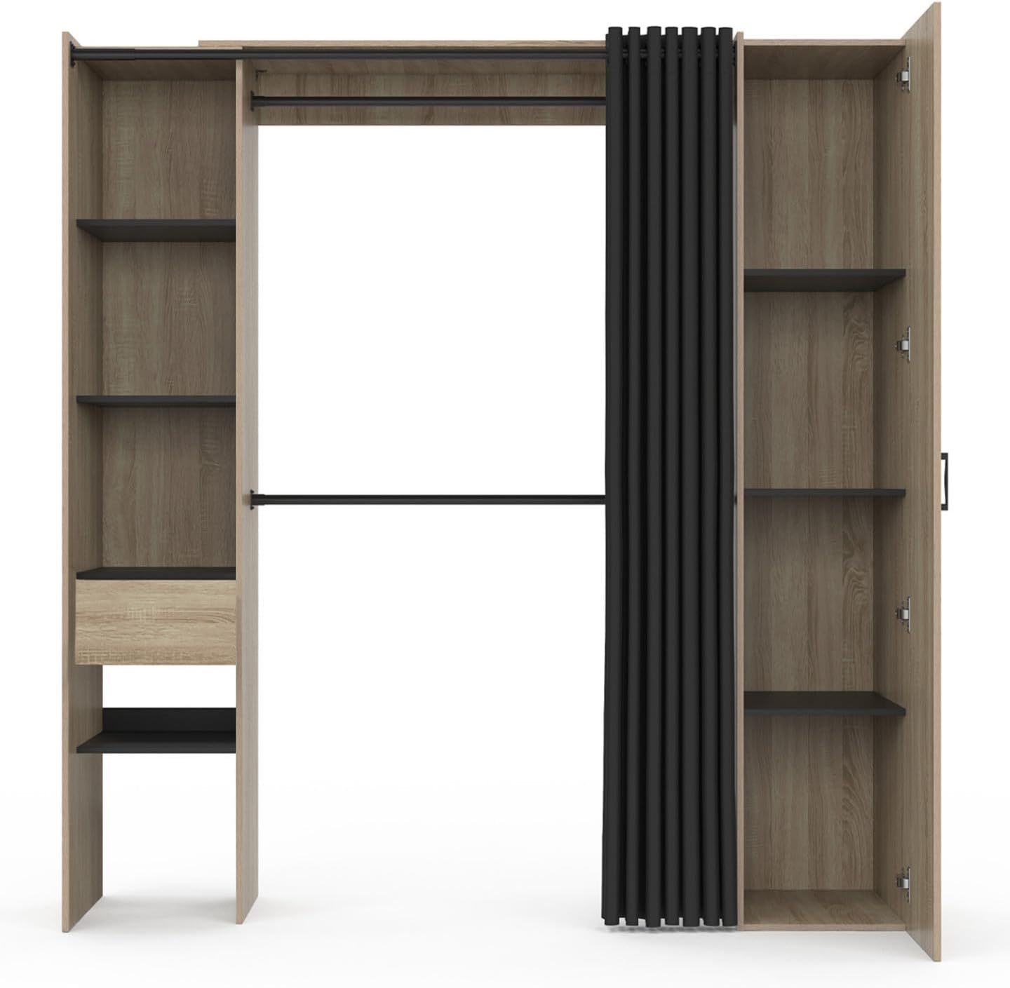 Fermez le dressing grâce à son grand rideau noir ainsi que sa porte de placard et conservez ainsi un espace toujours ordonné