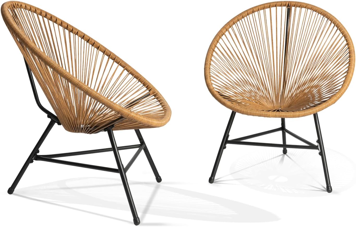 Composé de 2 fauteuils design dit > et d’une table basse avec plateau en verre trempé, ce salon de jardin aux cordages de couleur beige imitation rotin apportera une touche tendance et originale à votre extérieur !Avec son plateau amovible en verre trempé, la table l.45 x H.46,5 CM est facile à nettoyer.Conçus pour les moments de détente, les fauteuils L. 70 x l.70 x H. 80 cm sont extrêmement confortables ! De plus, la table avec plateau amovible en verre trempé vous permet de prendre votre petit déjeuner en terrasse le matin, de vous poser pour bouquiner l’après-midi ou encore de partager un moment convivial en soirée.Stable et robuste avec sa structure en acier 16/19 mm composée de 3 pieds qui soutiennent l’assise en cordage plastique, ce salon de jardin résistera au soleil et aux intempéries.Cet ensemble design et pratique se nettoie en quelques secondes pour vous permettre de profiter encore plus de votre extérieur.N’hésitez pas à agrémenter votre salon bas d’extérieur avec des lampes d’ambiance LED pour un rendu plus cocooning et convivial en soirée !Enfin, son design peut également trouver sa place en intérieur, dans votre salon ou votre bureau pour un joli look rétro.Entre design et confort, ce salon saura charmer vos invités !Dimensions du salon de jardin fil plastique coloris rotinDimensions d’un fauteuil : Longueur 70 cm x largeur 70 cm x Hauteur 80 cmHauteur du dossier : 59 cmDimensions de l’assise : l. 40 x H. 41,5 cmDimensions de la table : Ø 45 x H. 46,5 cmÉpaisseur du plateau table en verre trempé : 5 mmStructure en acier 16/19 mmAssise et dossier en plastiqueÀ monter soi-mêmeRetrouvez notre salon de jardin IZMIR en différents coloris : – Salon de jardin IZMIR table et 2 fauteuil œuf cordage noir- Salon de jardin IZMIR table et 2 fauteuil œuf cordage bleu canard- Salon de jardin IZMIR table et 2 fauteuils œuf cordage terracottaDécouvrez également nos salons de jardin disponibles sur notre boutique en ligne !
