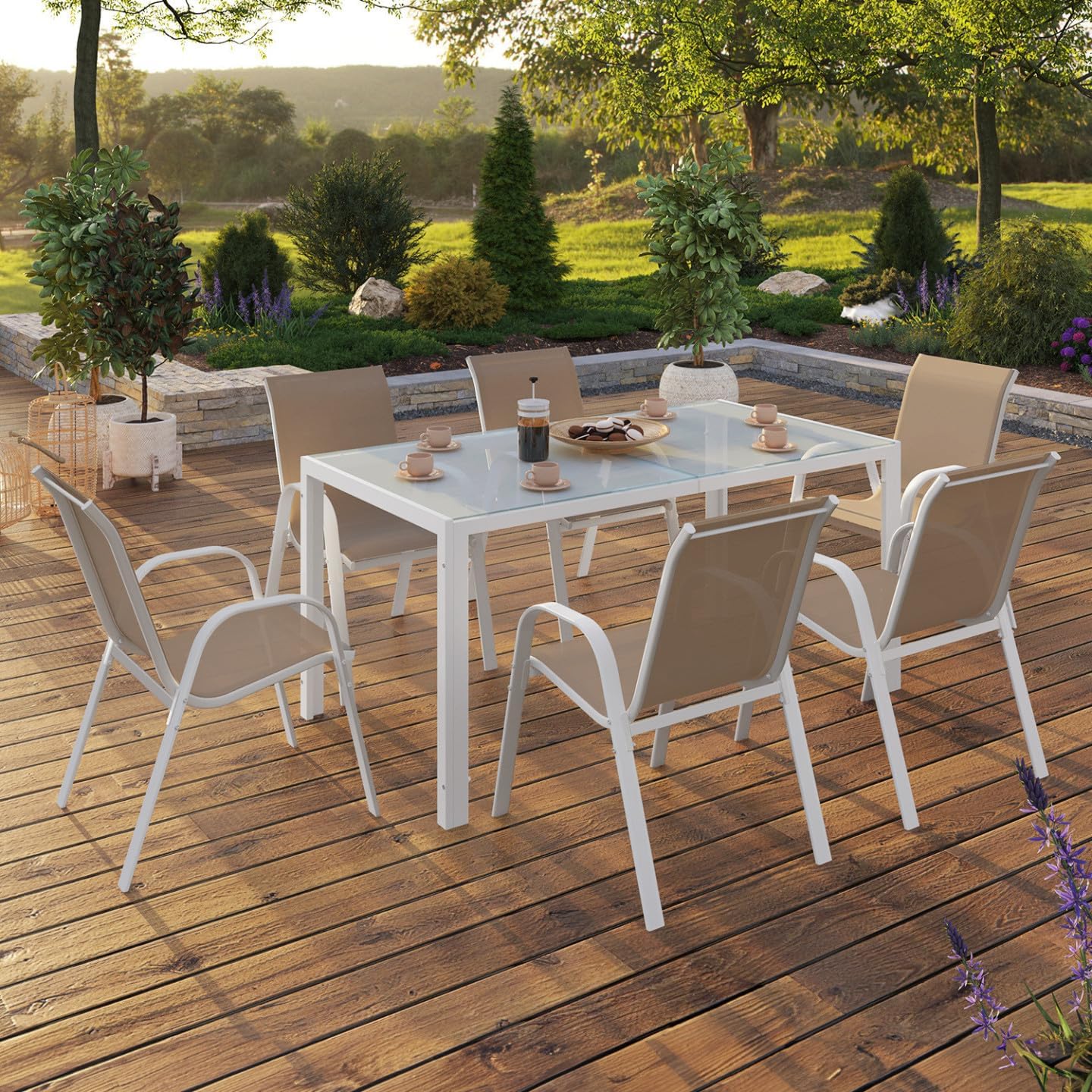 Facilité d’installation et de rangement grâce à ses 6 chaises empilables – facile à entretenir