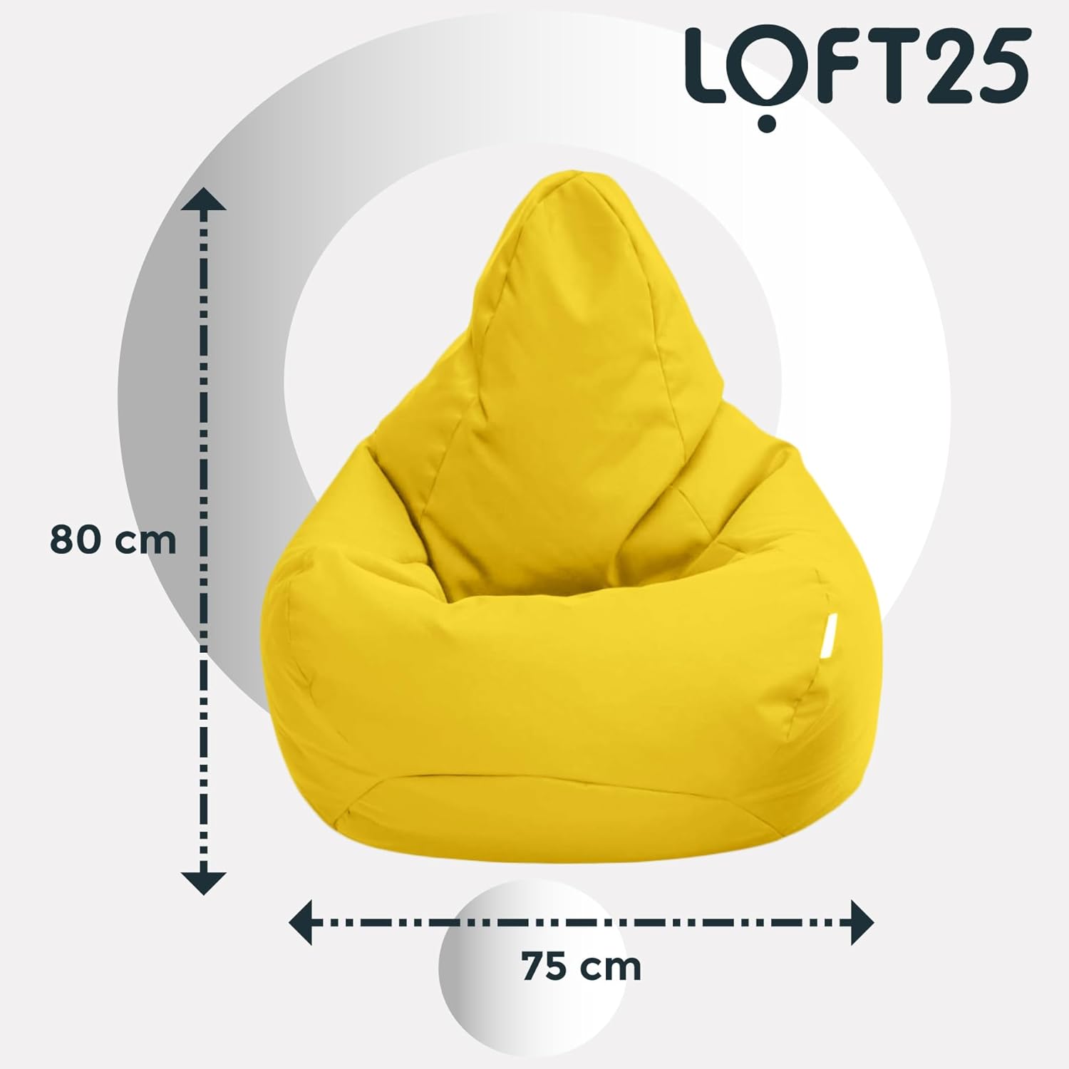 Matériau et dimensions : profondeur 75 cm, largeur 75 cm, hauteur 80 cm. Le pouf est fabriqué en polyester résistant à l’eau, ce qui le rend idéal pour l’extérieur et l’intérieur.