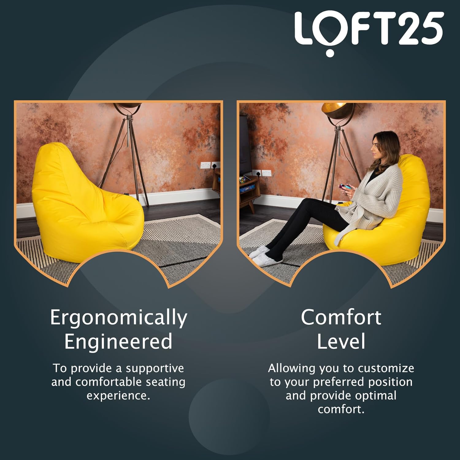 Chaque chaise est remplie de micro-billes en polystyrène EPS de qualité supérieure du Royaume-Uni, et répond à toutes les normes de sécurité incendie du Royaume-Uni.