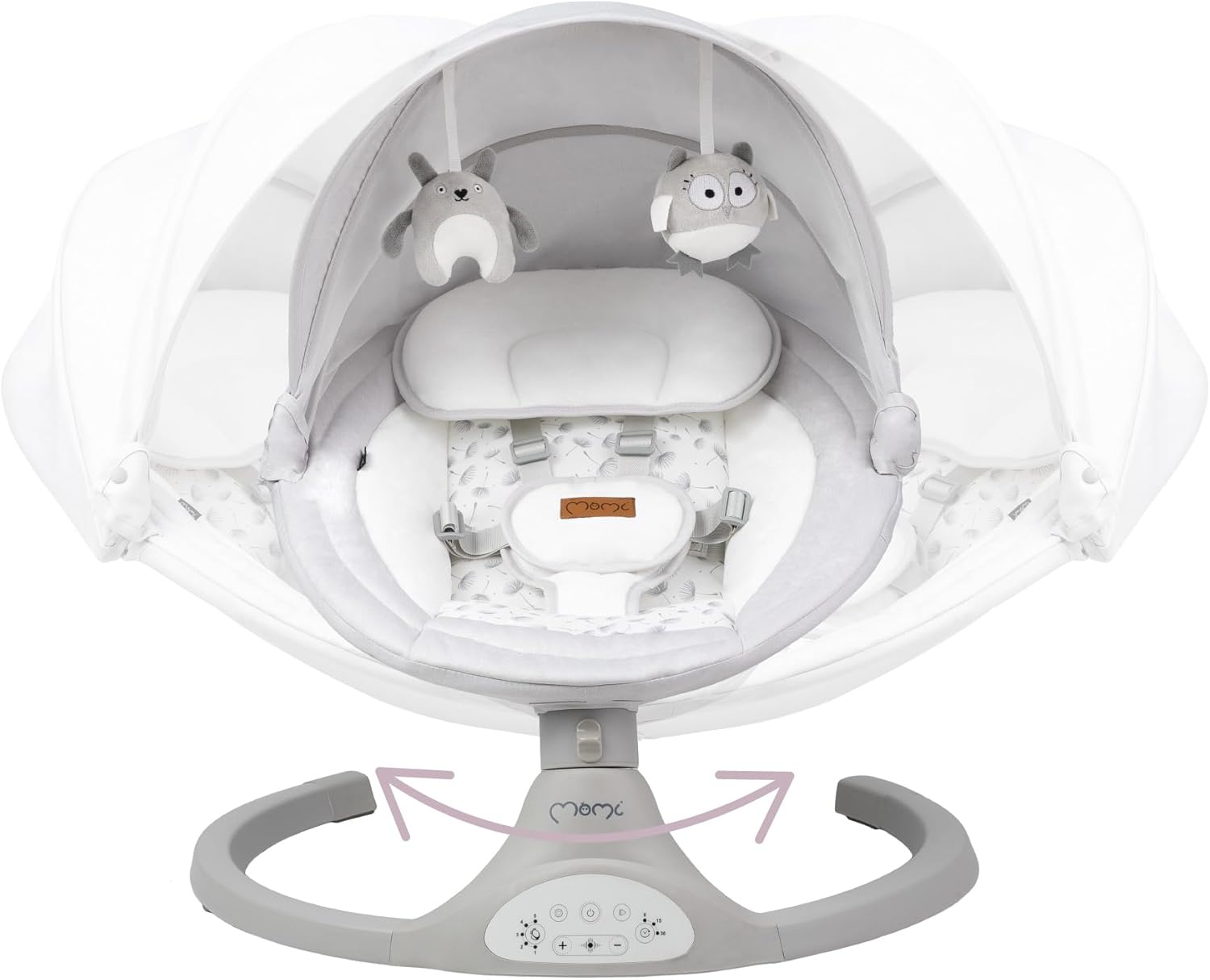 Créatif: Le transat est équipé de nombreuses fonctionnalités pour soutenir la créativité de l’enfant: 2 jouets doux avec attaches velcro pour jouer avec, durée du bercement réglable et 10 mélodies apaisantes agréables;
