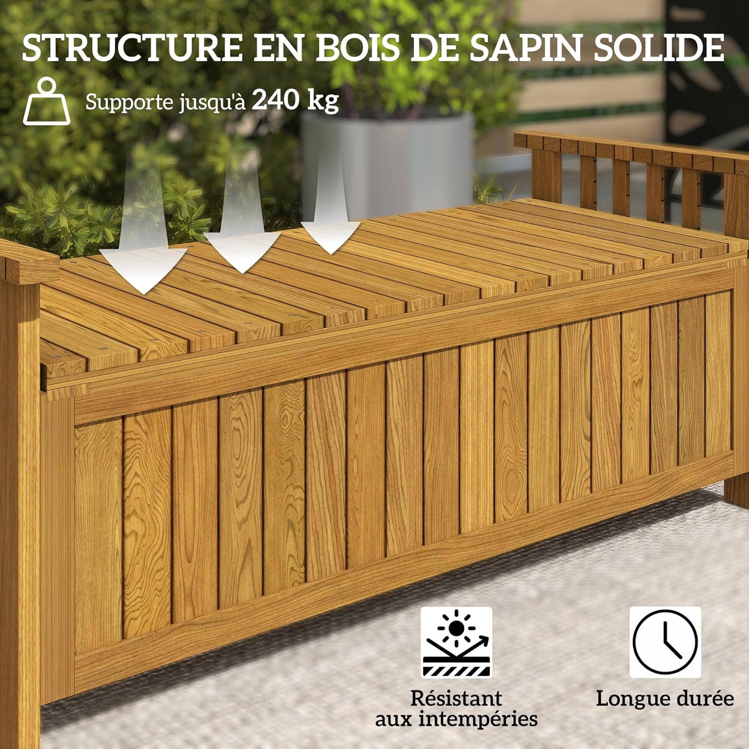 Découvrez le banc de jardin Outsunny, alliant élégance et fonctionnalité avec son assise pour deux et un grand compartiment de 186L. Parfait pour organiser vos outils de jardin, ce banc en bois de sapin robuste résiste aux intempéries, assurant durabilité et style à votre espace extérieur.
