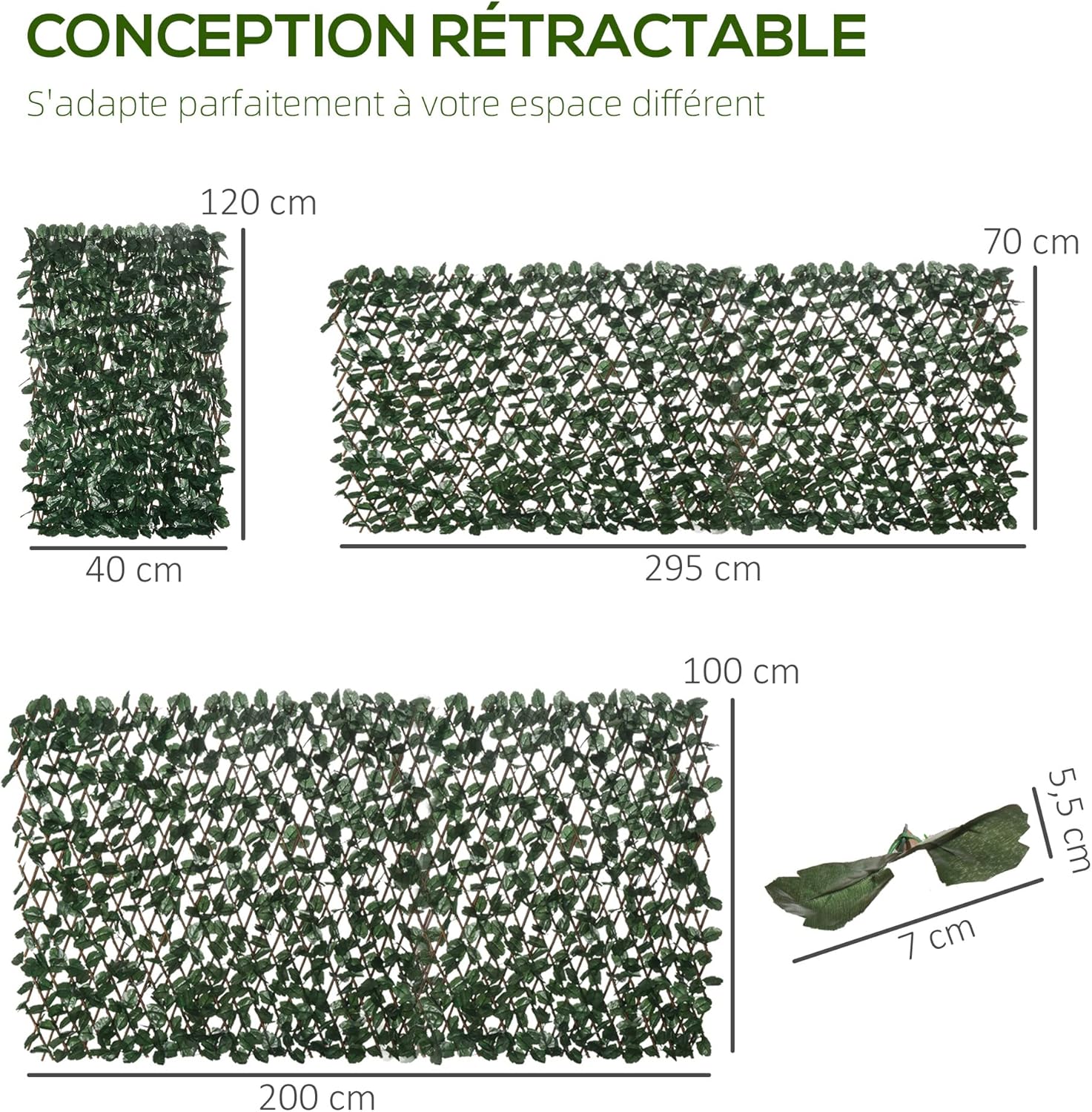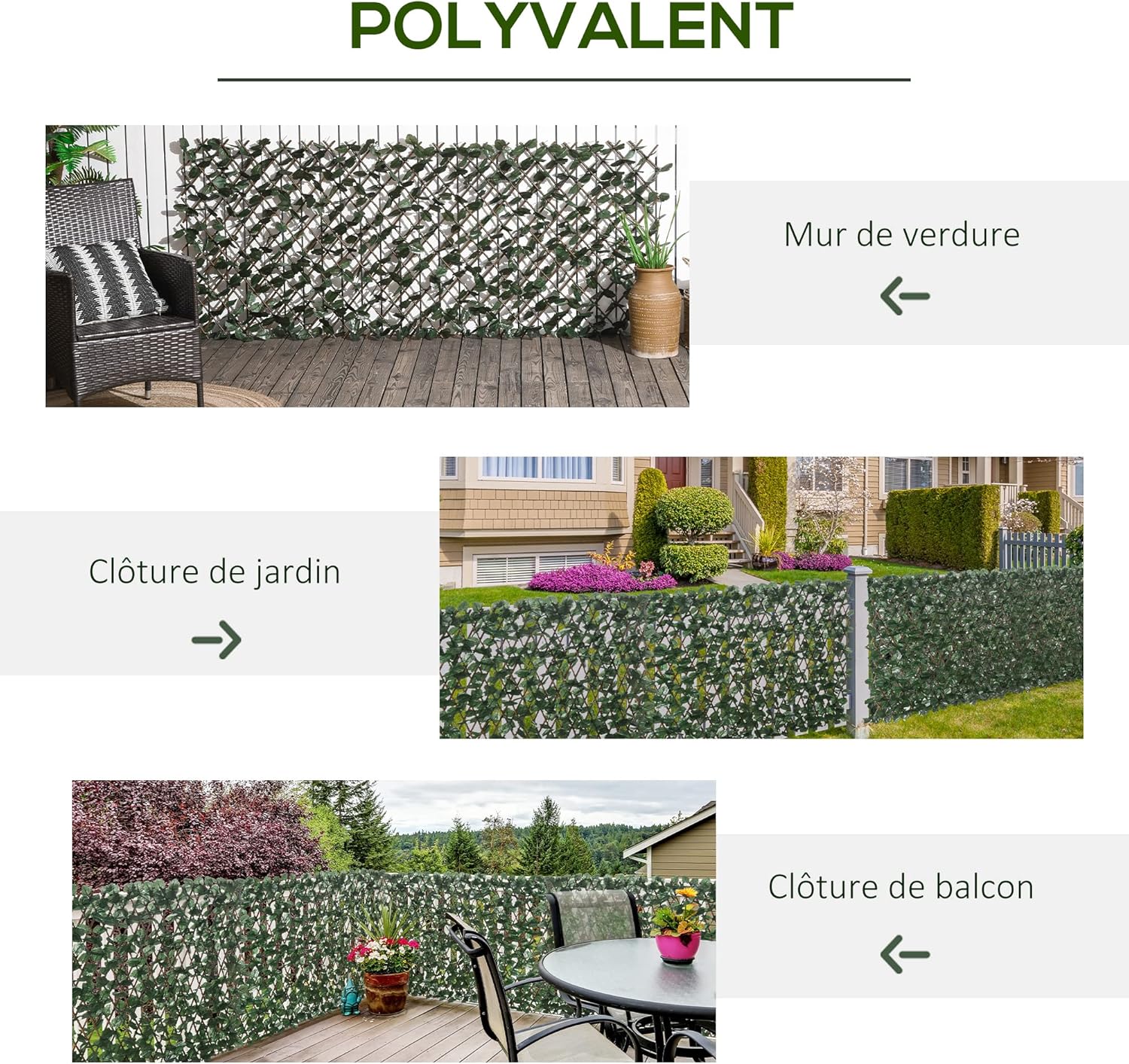 CLÔTURE AJUSTABLE : Cette clôture brise-vue a une longueur ajustable entre 40 et 295 cm, pour répondre à vos différents besoins. Elle est idéale pour garantir une plus grande intimité dans votre jardin, votre terrasse, votre patio ou tout autre espace extérieur, ou même pour être placée sur un mur à des fins de décoration.