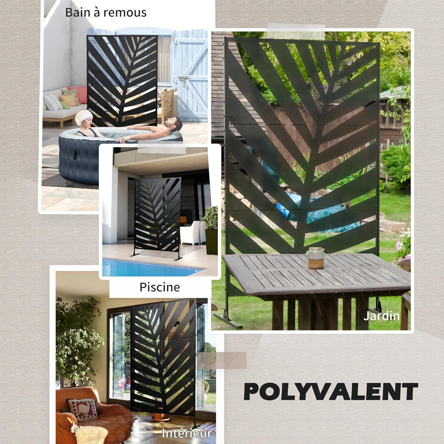 POLYVALENT : En plus d’être élégant, le panneau décoratif est très polyvalent. Il peut être utilisé pour créer des espaces séparés dans le jardin, délimiter une zone, accroître l’intimité, offrir de l’ombre ou servir de paravent.
