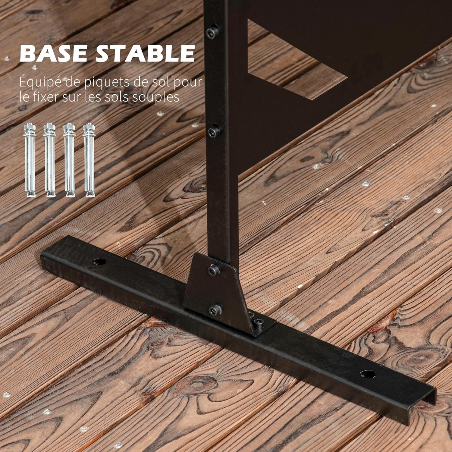 PANNEAU STABLE : Les larges pieds et les quatre vis d’expansion inclus permettent à l’écran de rester en place. Nous vous recommandons de lester les pieds avec des sacs de sable ou d’autres poids par vous-même pour une meilleure stabilité.