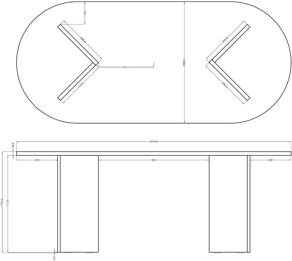 Extensible : Non ; Forme de la table : Ovale ; Hauteur : 75 cm ; Largeur : 90 cm ; Profondeur : 204 cm ; Hauteur des pieds : 72 cm ; Matériau : Panneau laminé ; Matériau du plateau : Panneau de meuble ; Matériau des pieds : Panneau de meuble ; Protection des bords : Bords ABS.