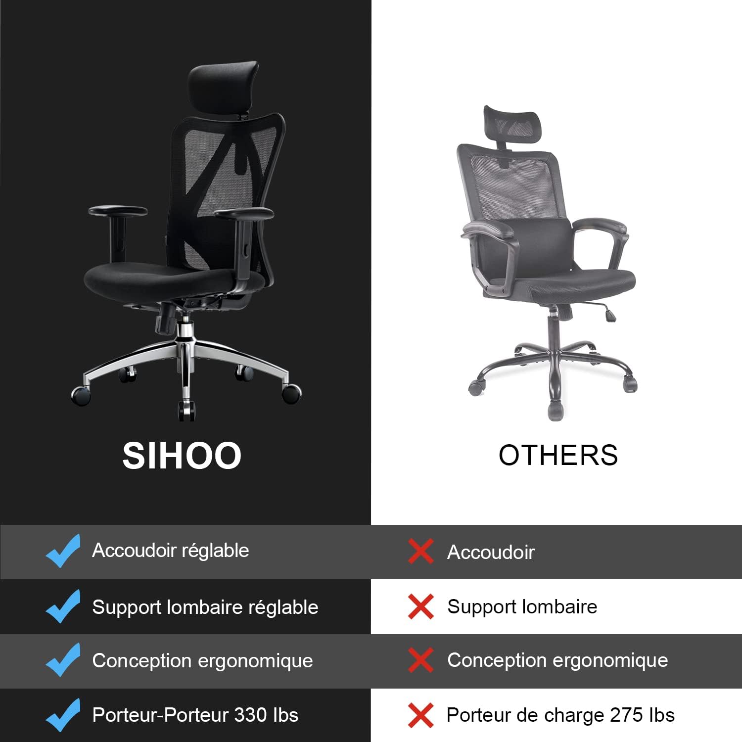 SIHOO se concentre sur le domaine de l’ergonomie, avec des principes de conception élégants et modernes, mesurés scientifiquement pour vous offrir une expérience d’assise confortable et scientifique.