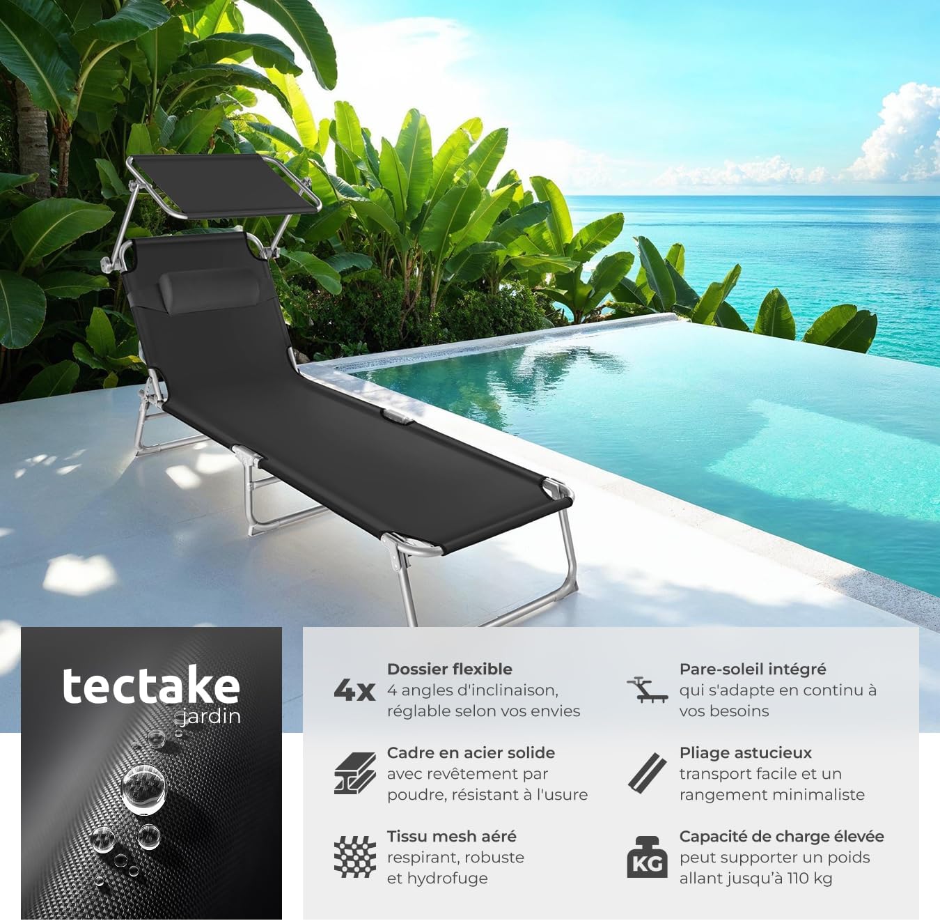 Capacité de charge par chaise longue: 110 kg