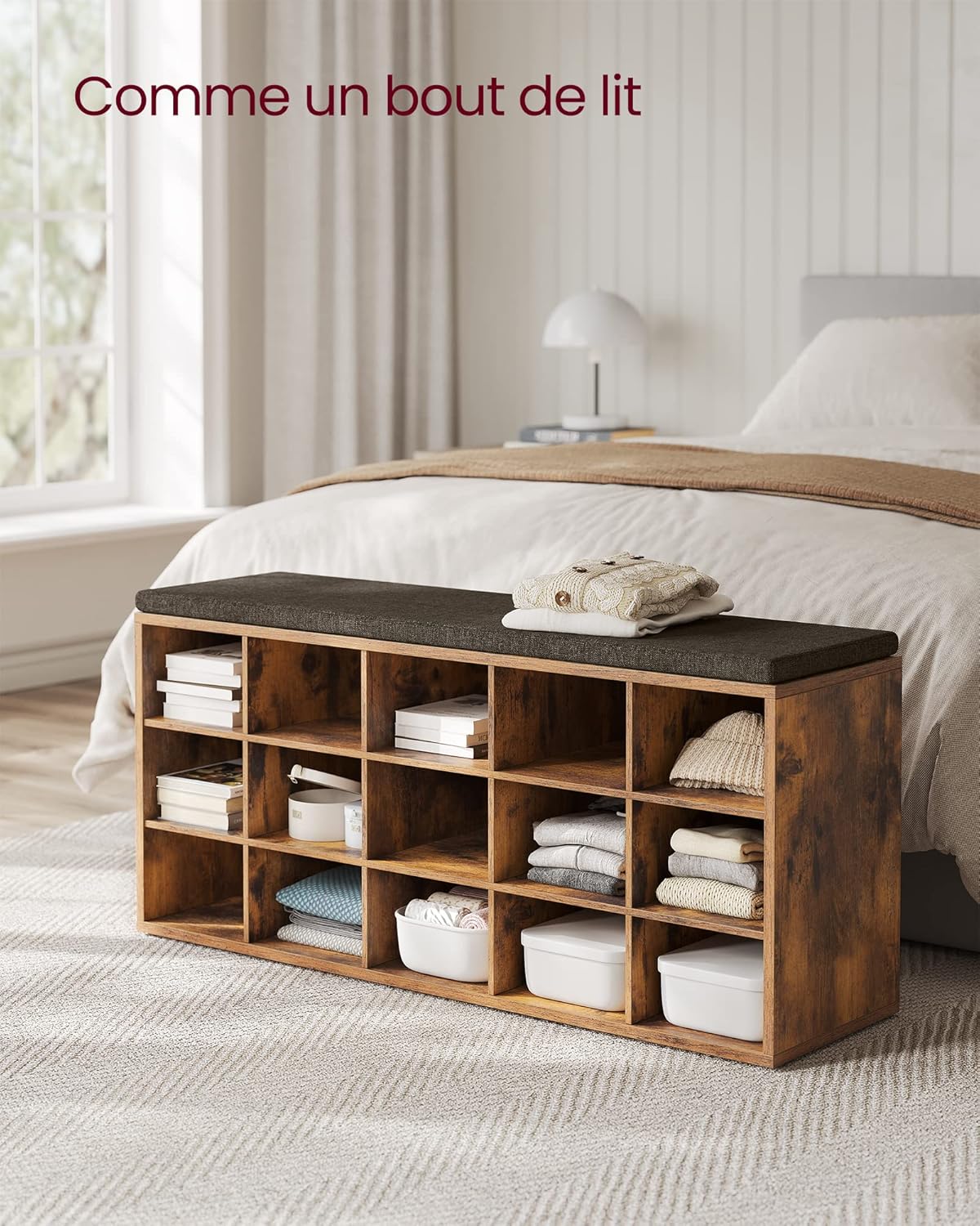 【ASSISE PRATIQUE】Rentrez à la maison et asseyez-vous sur ce banc à chaussures avec rangement après une longue journée de travail. Il a été sali accidentellement ? La housse amovible peut être facilement lavée à la main