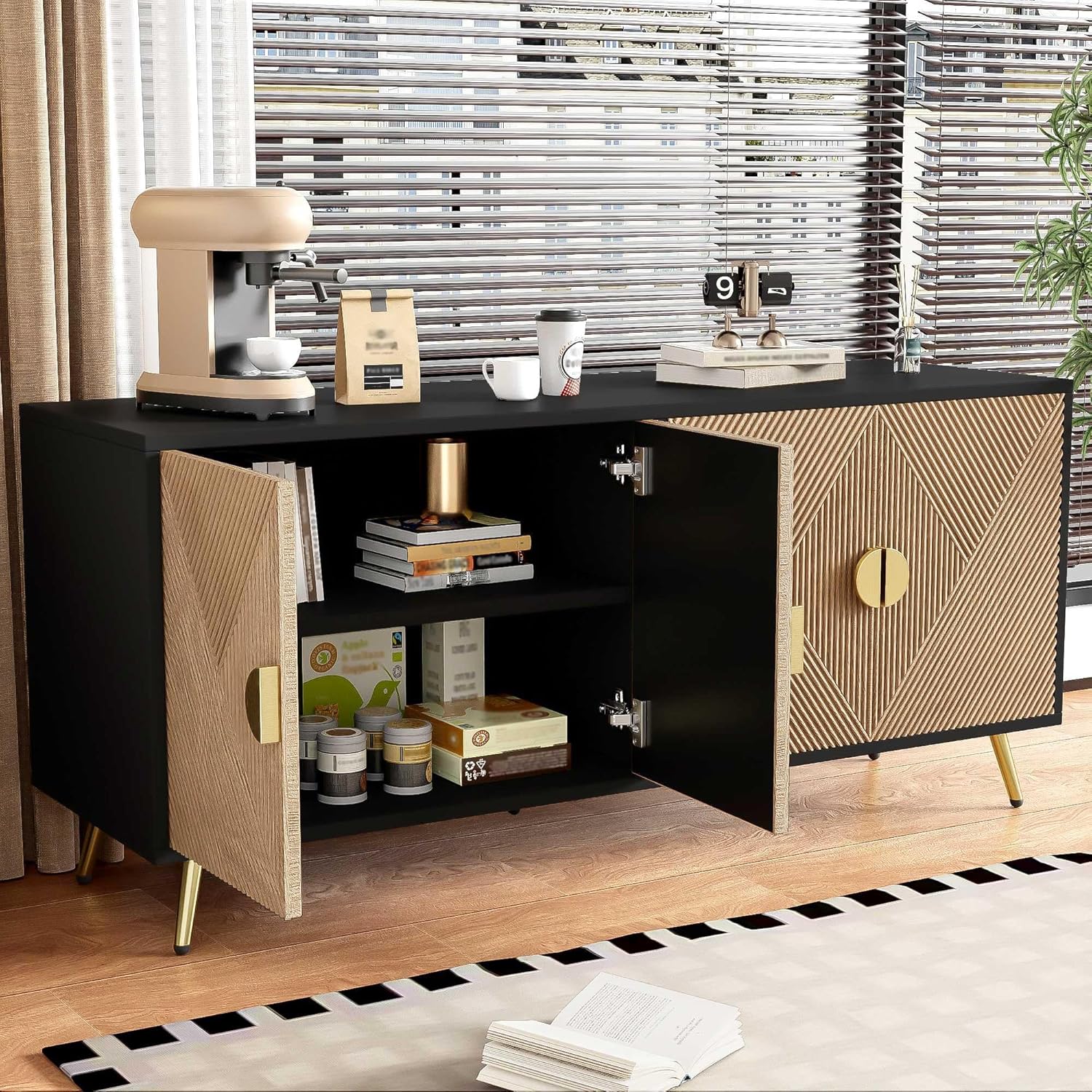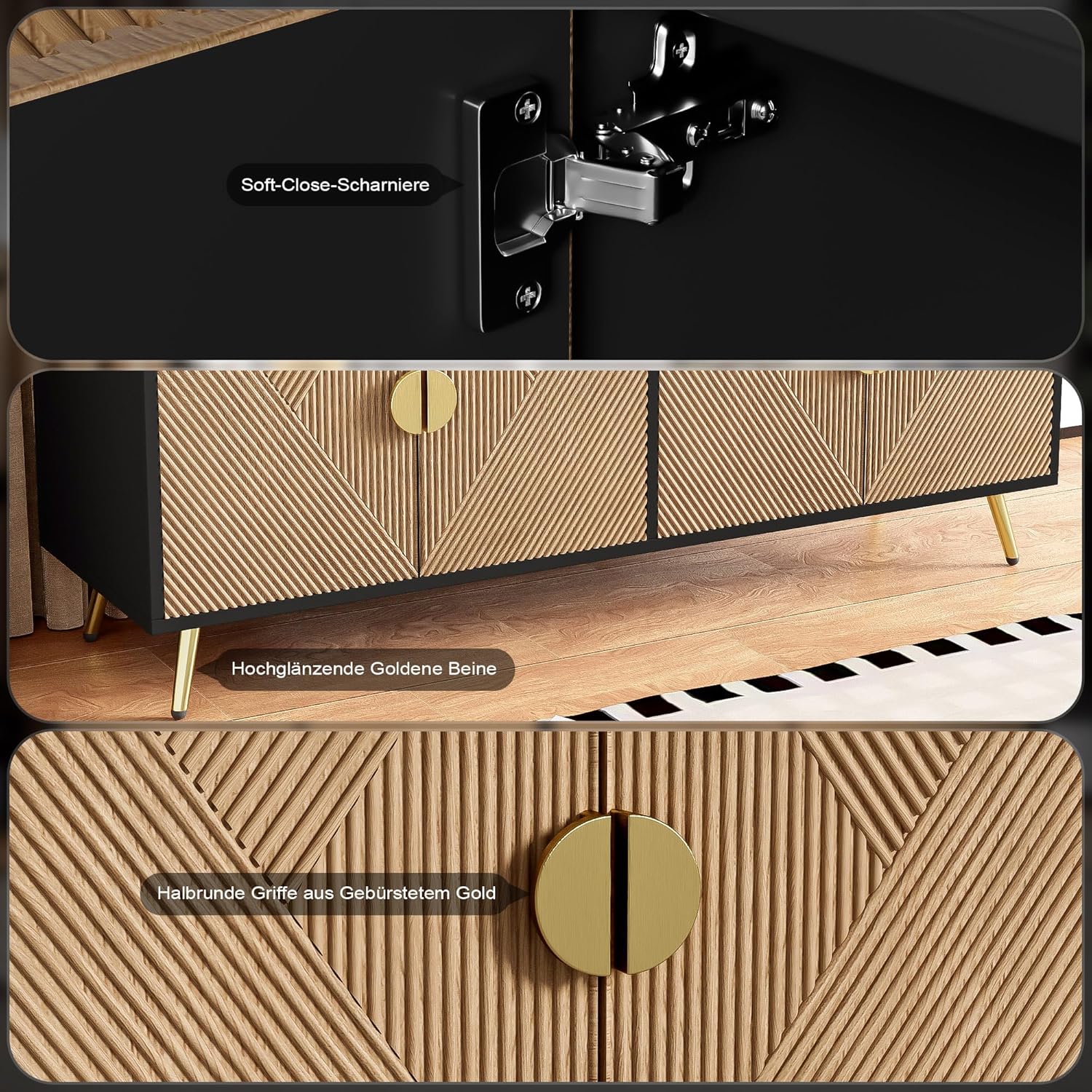 Buffet Quatre Portes Poignées Or Brossé et Pieds de Table Brillants 160X40X75cm