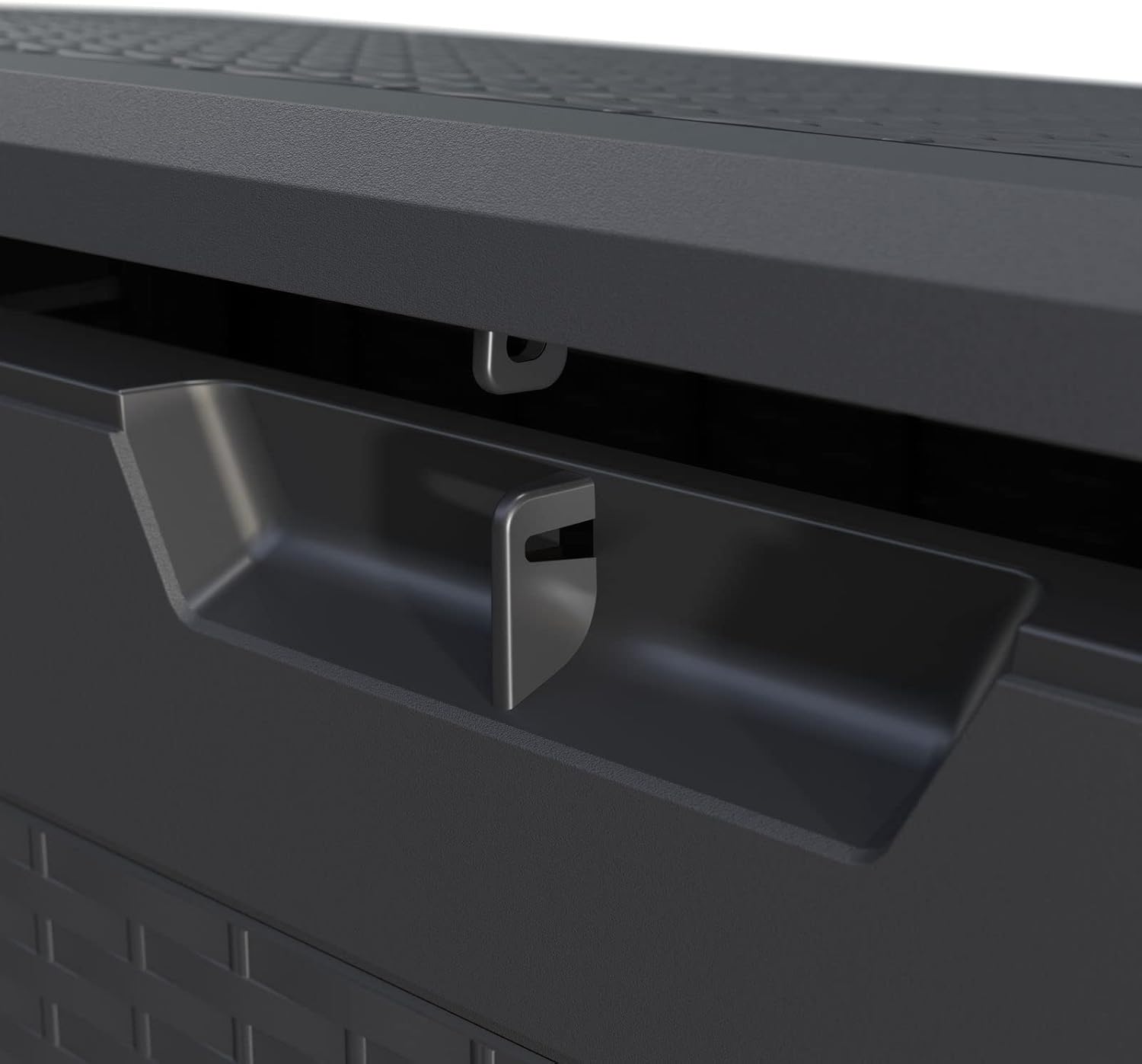 SÉCURITÉ : Ce coffre de rangement est équipé d’un dispositif de verrouillage vous permettant d’y accrocher par exemple un cadenas afin de ranger vos affaires en toute sécurité.