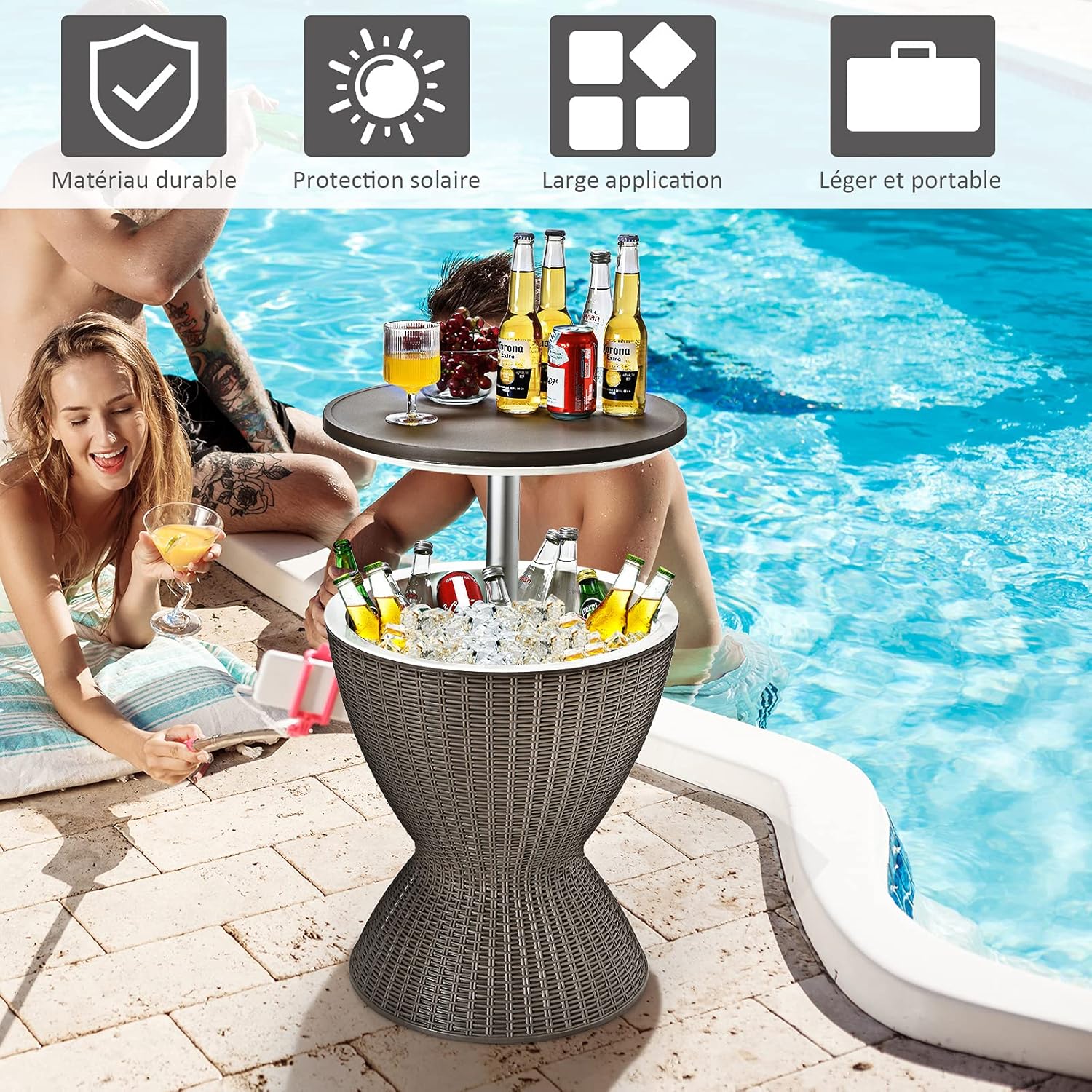 【Design imitation rotin :】Avec son apparence soignée en osier, la glacière est un choix idéal pour un patio, le bord de la piscine, une terrasse, un jardin et autres occasions extérieures. Assortie à votre mobilier en rotin, cette glacière allie idéalement fonctionnalité et côté décoratif.