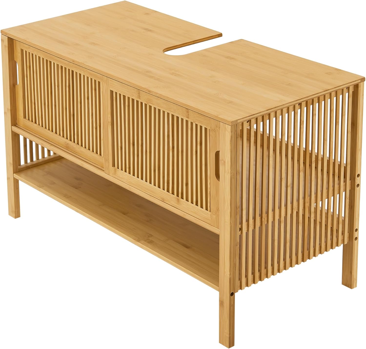 Espace Raffiné : Notre meuble sous lavabo, avec ses deux portes coulissantes, offre un rangement élégant en deux niveaux. Parfait pour les serviettes et les articles de salle de bains.