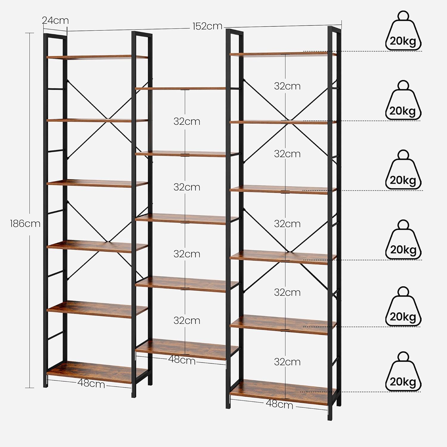 Couleur : Brun Rustique et NoirMatériaux : Panneaux de Particules, MétalTaille : 24 x 152 x 186 cm (T x B x H)Poids : 24,5 kg