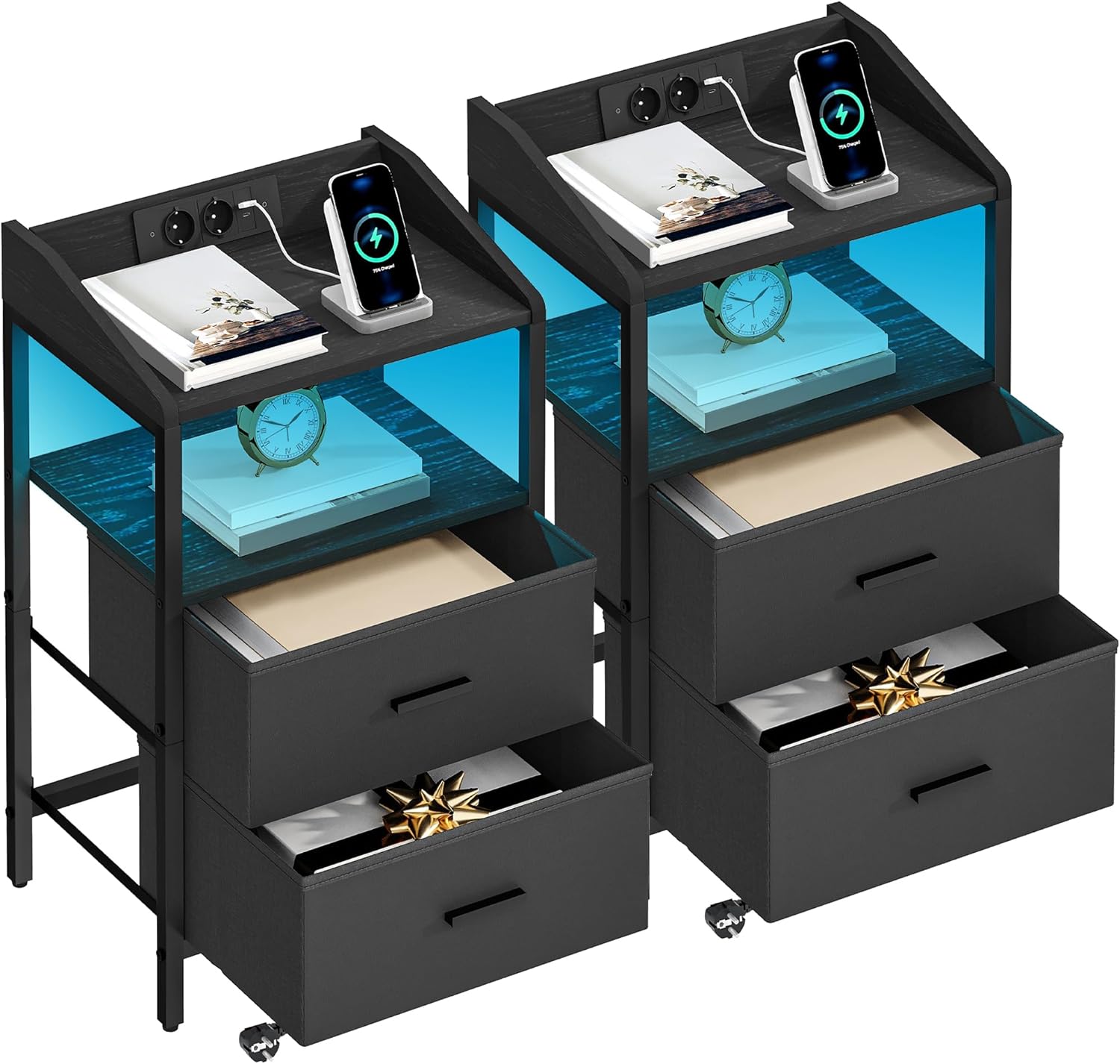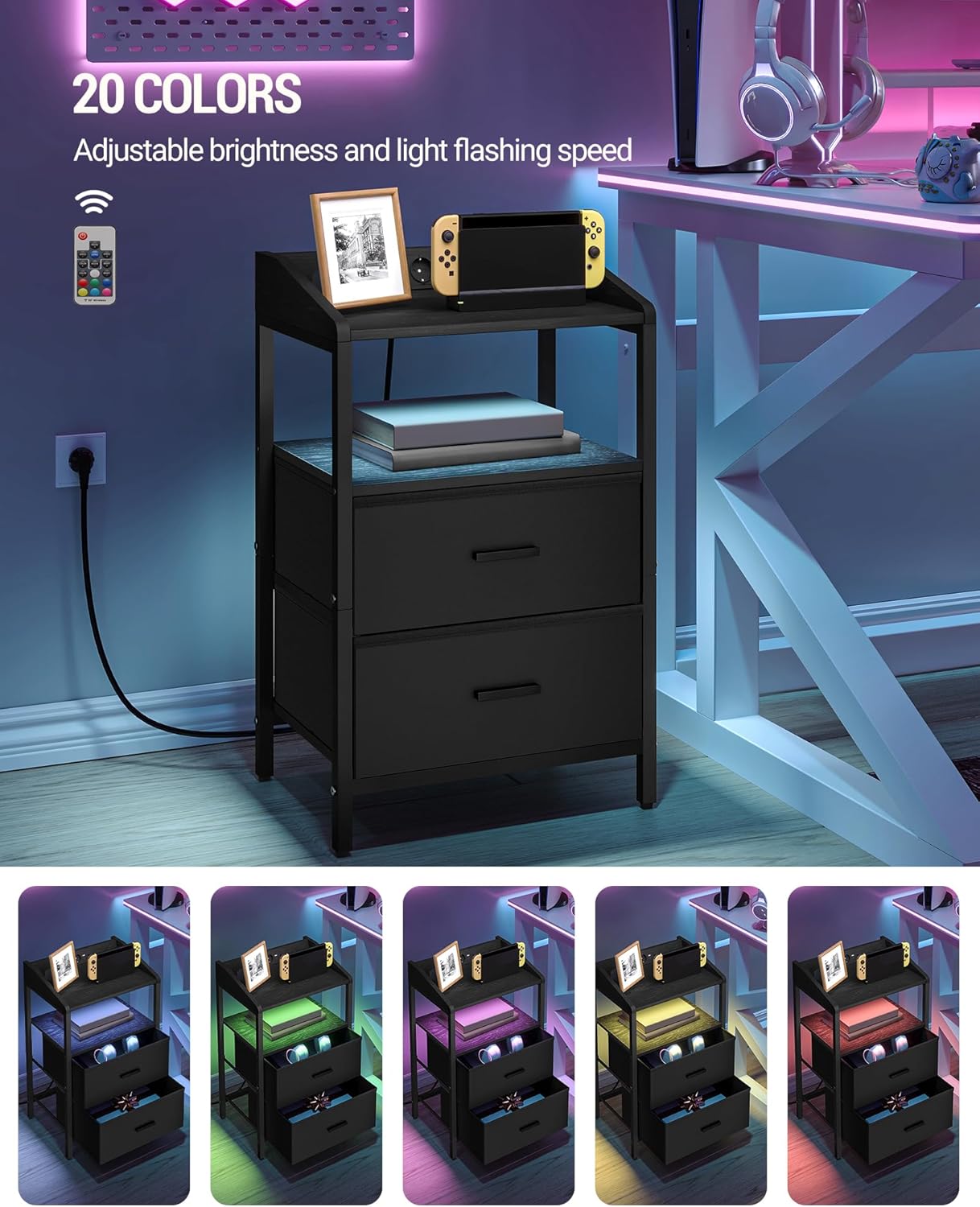 【Table de Nuit avec Lumières LED】Ajoutez une touche de style et de tranquillité au décor de votre chambre à coucher avec nos tables de nuit dotées de lumières LED vibrantes. Avec 20 couleurs statiques et 22 modes dynamiques, vous pouvez facilement créer une atmosphère confortable et rêveuse adaptée à votre humeur. La table de nuit peut également servir de veilleuse, vous aidant ainsi à surmonter votre peur du noir.