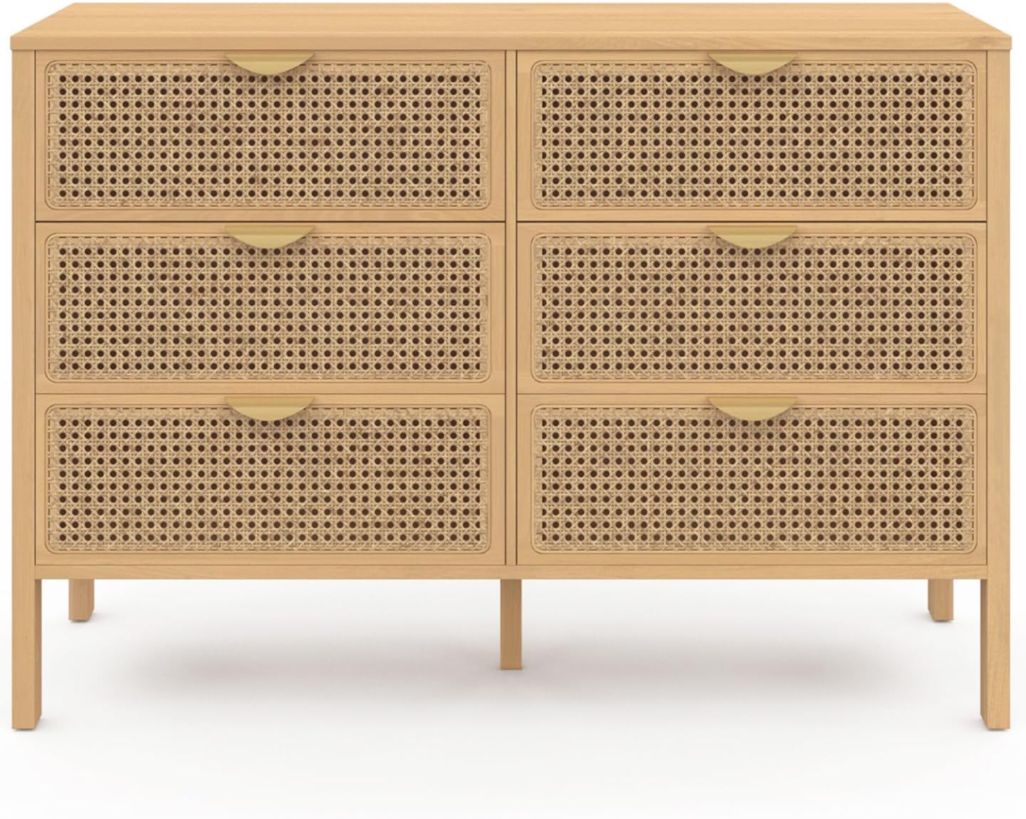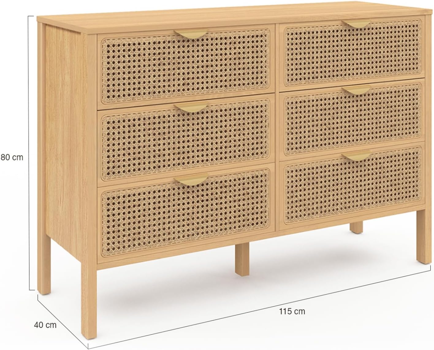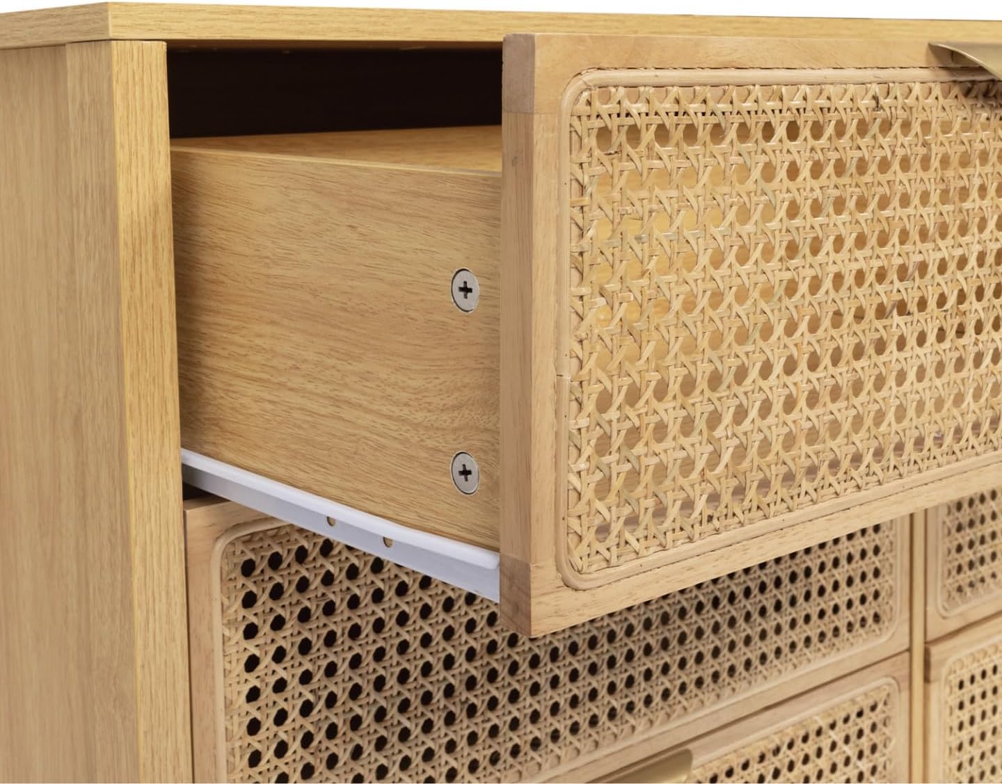 Commode 6 tiroirs EDHEN cannage et bois pour un style tendance et naturel dans votre intérieur