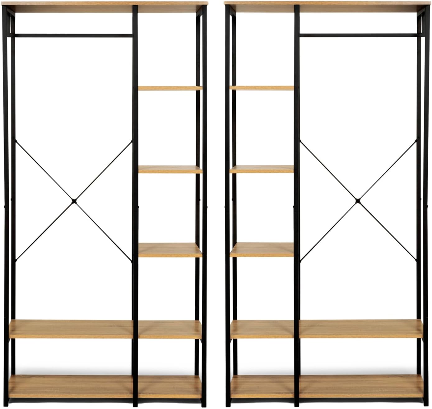 Dim : L.180 x l.40 x H.167 cm – Structure métal et étagères effet bois – 2 penderies à moduler