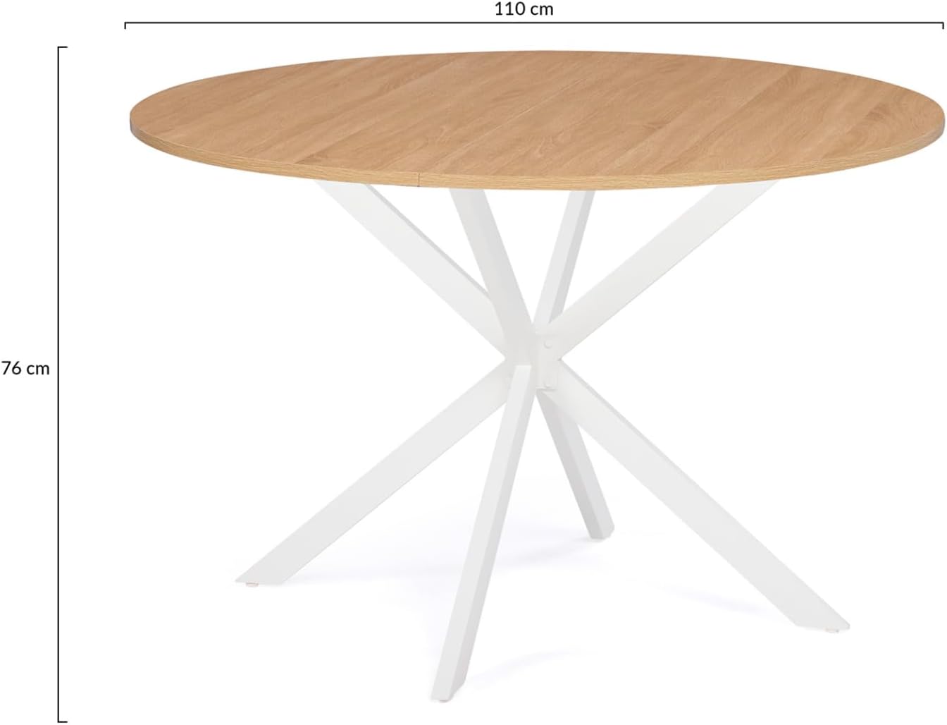 Le design industriel s’invite dans votre salle à manger avec cette table à manger ALIX ronde bicolore coloris bois et blanc 110 cm !La table à manger 6 personnes et son plateau de 110 cm de diamètre apporte un côté sophistiqué à votre intérieur !Profitez de votre repas en toute tranquillité, autour d’un apéro en famille, entre amis ou bien installez-vous avec votre ordinateur pour consulter vos mails !Sa forme ronde conviviale en fait une table à manger idéale pour partager des moments privilégiés avec vos proches tout en facilitant la circulation au sein de la pièce.Dotée d’une structure bi-matière avec son plateau bois et son pied araignée central en métal blanc, c’est l’association idéale pour un look façon loft et un esprit chaleureux qui se mariera parfaitement avec votre décoration intérieure en y apportant une touche d’originalité.De plus, sa structure en PB d’une épaisseur de 1,5 cm et son pied en métal blanc lui assurent stabilité et robustesse !Optez pour le style industriel moderne et craquez pour l’élégante table à manger ALIX ronde 110 cm !Dimensions de la table à manger ALIX ronde bois et métal 110 cmDimensions globales : Diamètre 110 cm x Hauteur 76 cmLargeur du piétement : 95 cmPlateau coupé en 2Matériaux : panneaux de particules (PB) mélaminés 1,5 cm, pieds métal 5 cm x 2,5 cmColoris : bois et blancCapacité : 6 personnesÀ monter soi-mêmeCe modèle est également disponible en coloris noir et bois.Retrouvez l’ensemble de notre collection industrielle sur notre boutique en ligne !