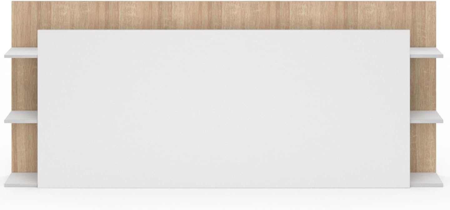 Vous êtes à la recherche d’une tête de lit moderne et épurée mais qui propose du rangement ? Craquez pour notre tête de lit CIRI blanc et bois avec étagères intégrées qui offre une touche d’élégance et de fonctionnalité dans votre chambre en un tour de main. Tout le long de la tête de lit, vous disposez d’une grande étagère pratique et semi-cachée pour y déposer vos livres et quelques objets de décoration qui pourront apporter du cachet à votre chambre. Les étagères latérales sont parfaites pour garder à proximité vos effets personnels comme votre téléphone ou vos lunettes. L’association du bois et du blanc apporte une touche contemporaine et raffinée à votre chambre. Sa forme épurée et son côté bicolore conviennent à divers styles de décoration, la tête de lit à poser au sol saura trouver facilement sa place dans votre intérieur. Fonctionnelle et design, elle a été fabriquée en panneaux de particules de bois et vous offre stabilité et robustesse. Sa belle dimension de 165 cm de long au niveau de la planche centrale a été réfléchie pour pouvoir s’adapter aux lits 140 cm comme aux lits 160 cm et ainsi répondre à tous vos besoins. Ce meuble allie le charme du bois à la modernité du blanc, tout en offrant des espaces de rangement pratiques pour vos livres, objets décoratifs ou lampes de chevet.Alors n’hésitez plus et optez pour la tête de lit avec rangements blanc et bois CIRI 195 cm pour une chambre optimisée et tendance à prix mini !Dimensions de la tête de lit CIRI bois et blancDimensions globales : Longueur 195 cm x largeur 21,5 cm x Hauteur 80 cmDimensions de la planche centrale blanche : L. 165 x H. 70 cm Dimensions de l’étagère du haut : L. 195 x l. 18 cm Dimensions des étagères latérales : L. 18 x l. 15 x H. 27,5 cmMatériaux : panneaux de particules de bois (PB)Coloris : blanc et boisÀ monter soi-mêmeRetrouvez l’ensemble de nos têtes de lit sur notre boutique en ligne !
