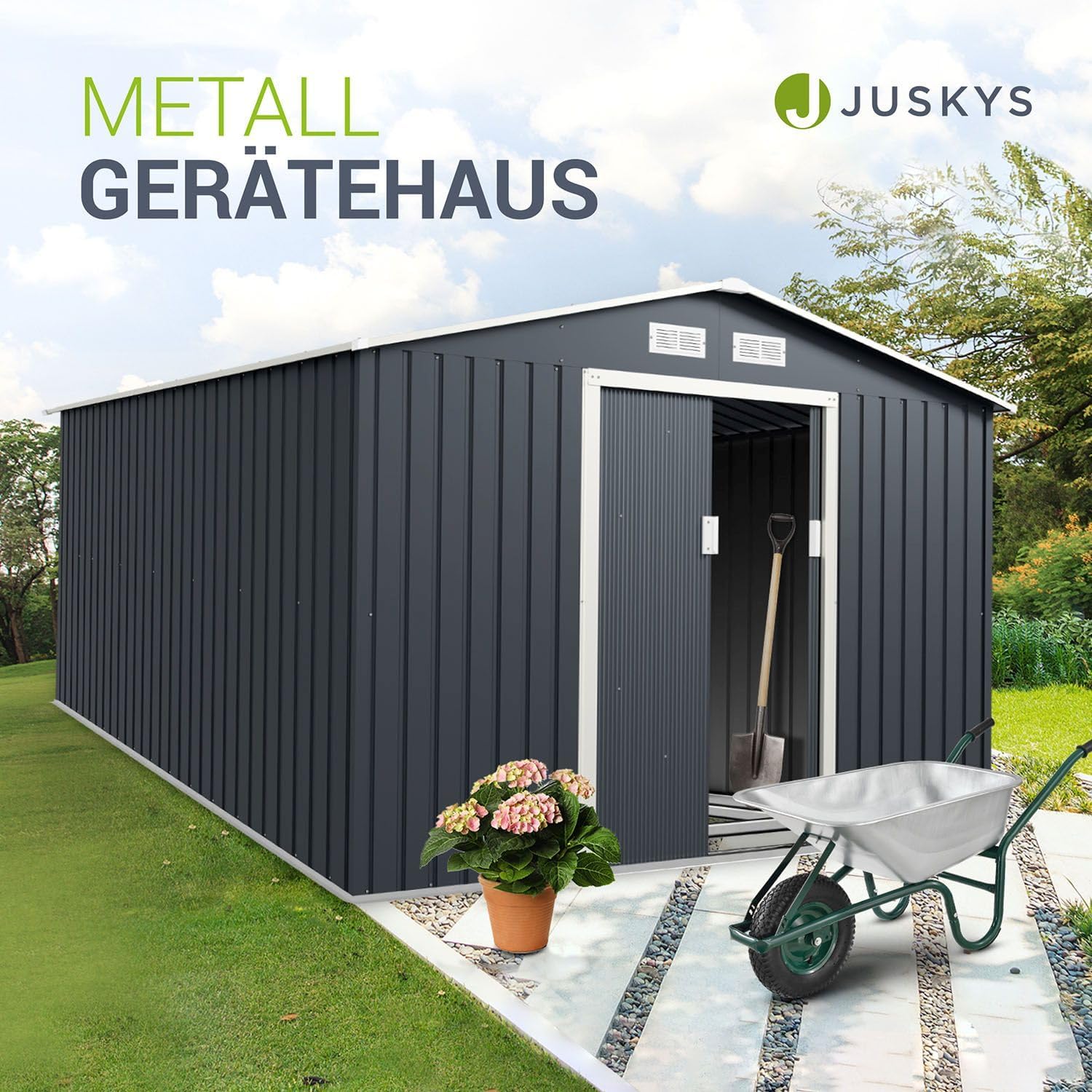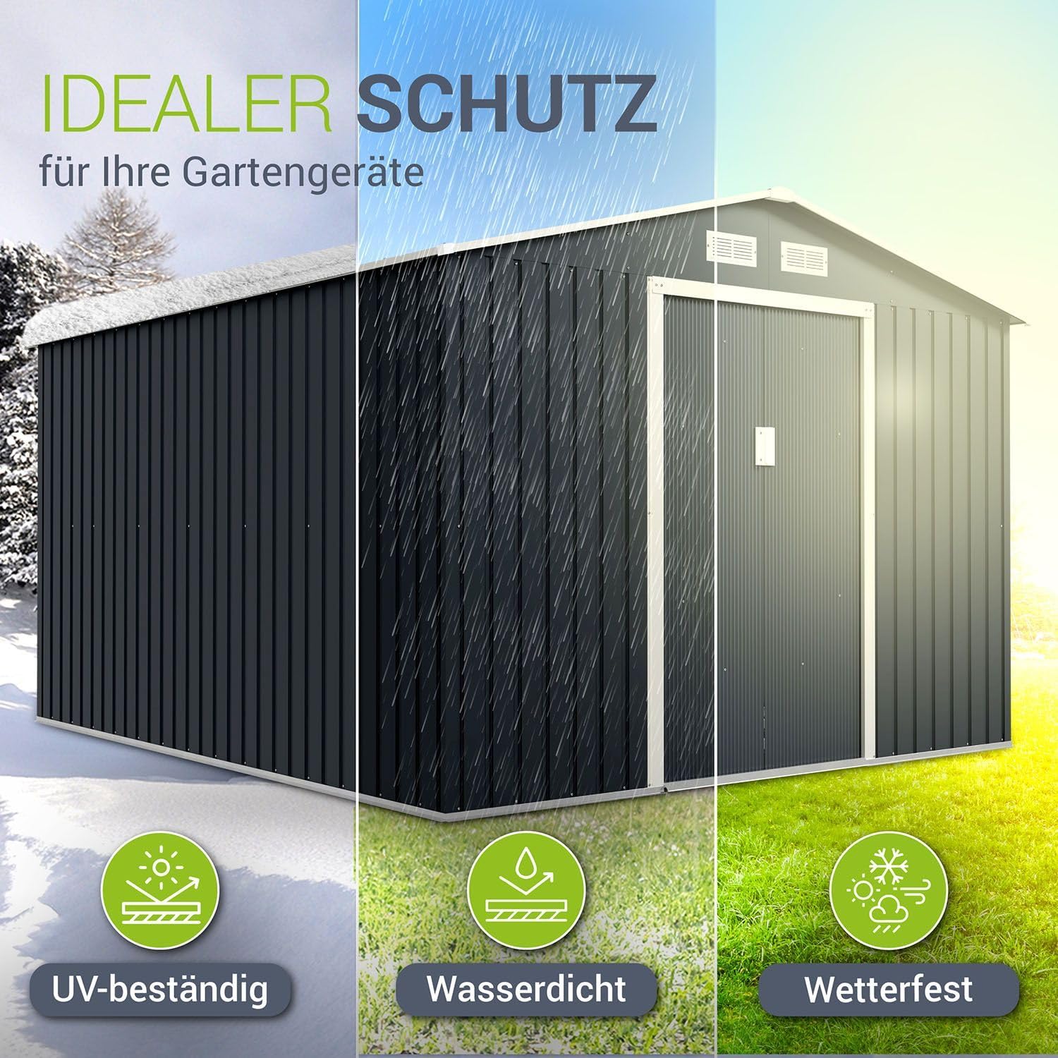 Bien protégé; Abri de jardin XXL robuste avec toit en pente anthracite en tôle d’acier galvanisée à chaud ; résiste aux intempéries, aux rayons UV et à la saleté ; Durable, stable, résistant et étanche