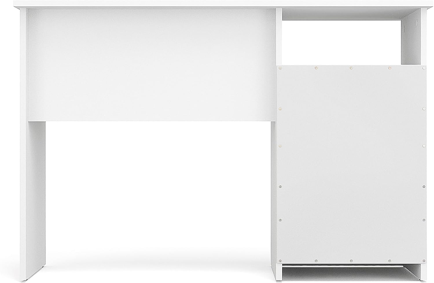 Petit bureau blanc compact avec tiroirs spacieux, idéal pour maintenir un espace de travail ordonné dans tout intérieur