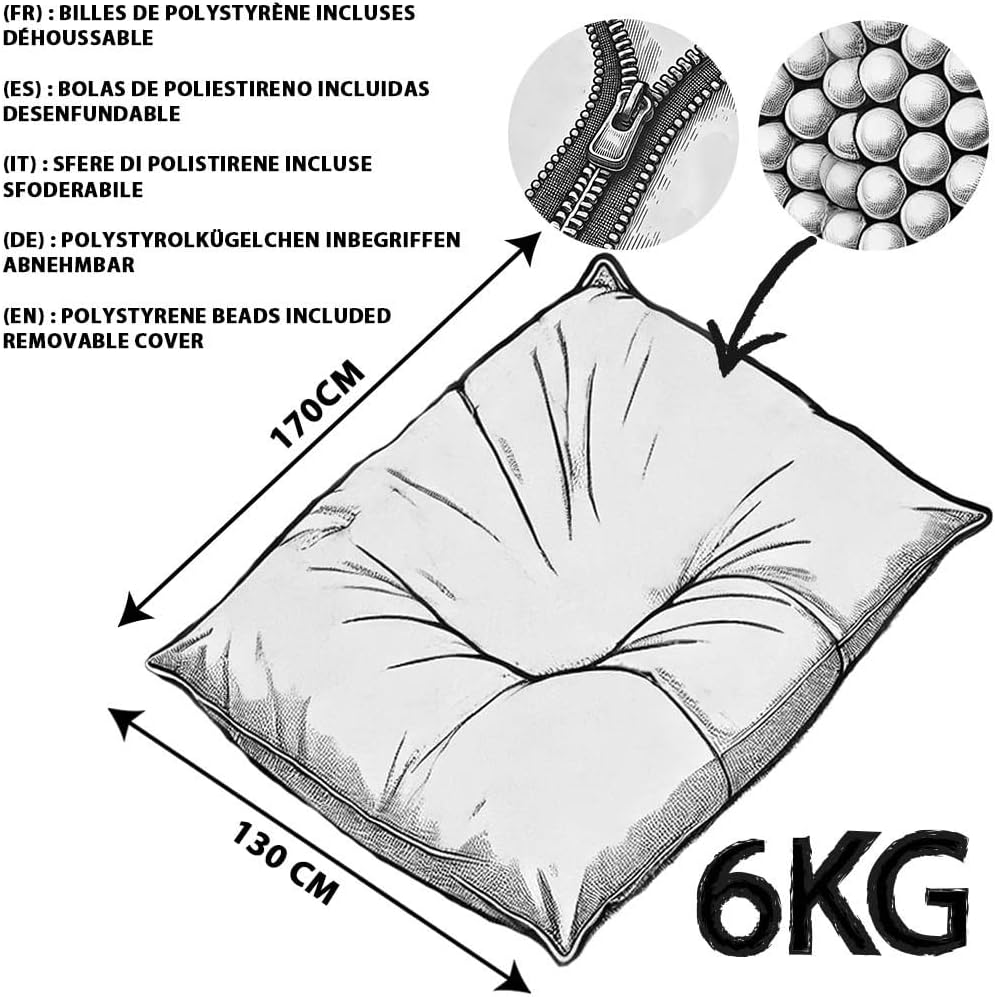 Fourni avec de Billes de Polystyrène : Les billes de polystyrène de haute densité utilisées pour le remplissage de nos poufs sont recyclables et fabriquées en France, dans notre propre usine. Ce choix témoigne de notre volonté de vous offrir le meilleur confort.