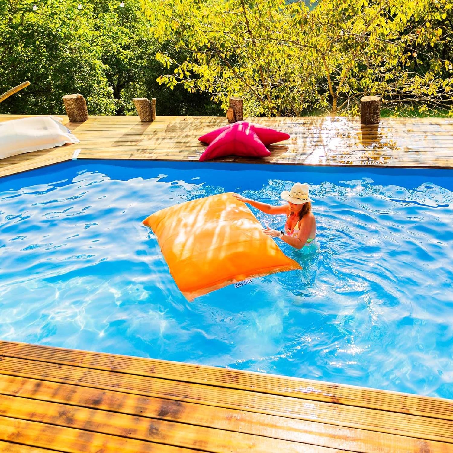 Polyvalence et confort optimal : Avec son remplissage en billes de polystyrène flottantes, ce pouf s’adapte parfaitement à la forme de votre corps, offrant un soutien ergonomique aussi bien sur terre que dans l’eau. Idéal pour se détendre au bord de la piscine ou directement dans l’eau, il garantit un confort exceptionnel dans tous les environnements extérieurs.