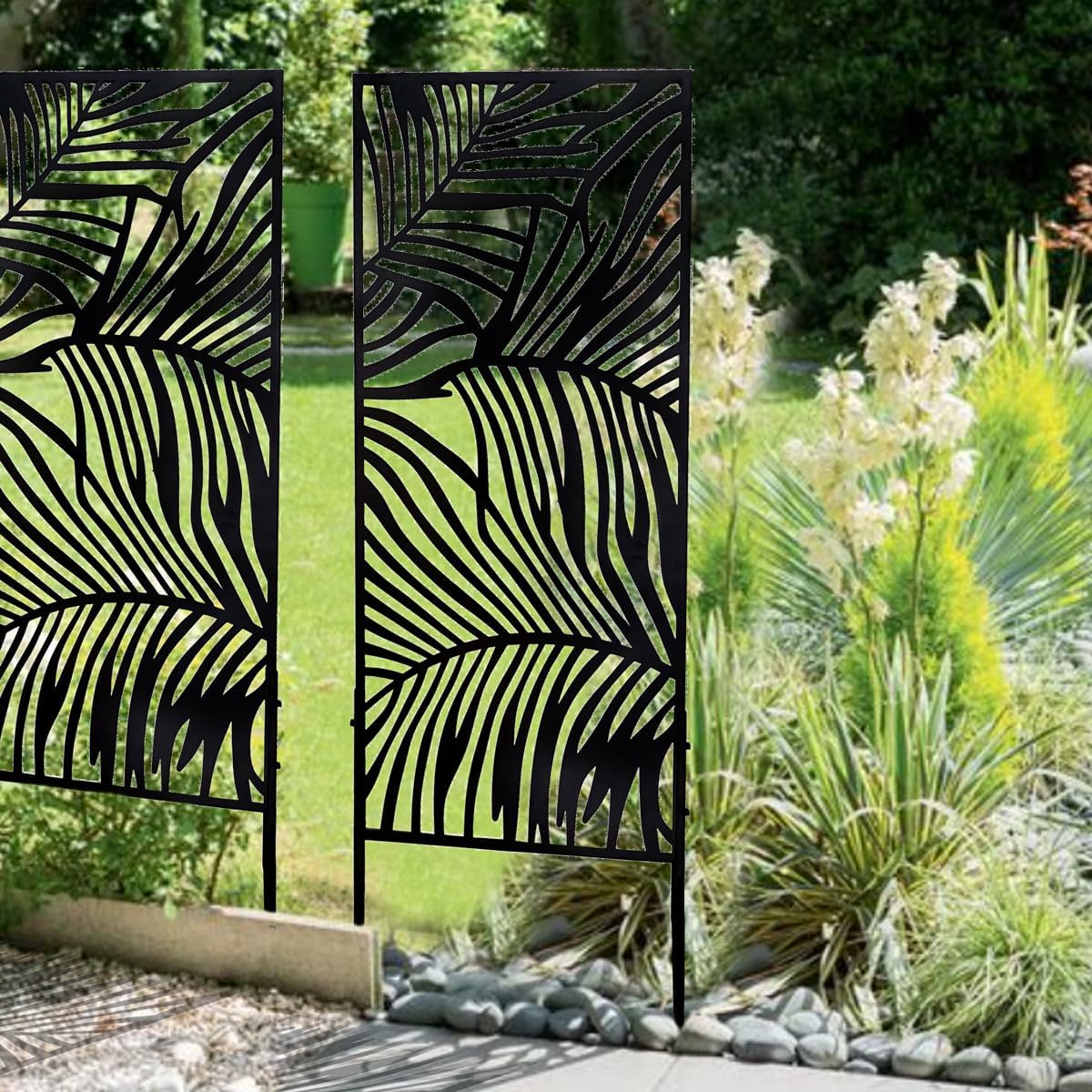 Ce lot de 2 panneaux métalliques est l’option idéale pour allier protection visuelle, design élégant et intimité. Chaque écran est fabriqué en métal robuste, offrant ainsi une solution durable et esthétique pour votre espace extérieur ou intérieur. Leur structure perforée permet de filtrer la lumière tout en empêchant les regards indiscrets, tout en garantissant une ventilation optimale. Parfaits pour aménager une terrasse, un balcon ou même pour délimiter un espace privé dans votre jardin, ces écrans ajoutent une touche moderne et sophistiquée à votre environnement. Dimensions : Largeur 45 x hauteur 100 cm Matière : métal coloris : Noir Poids du lot : 30 kg