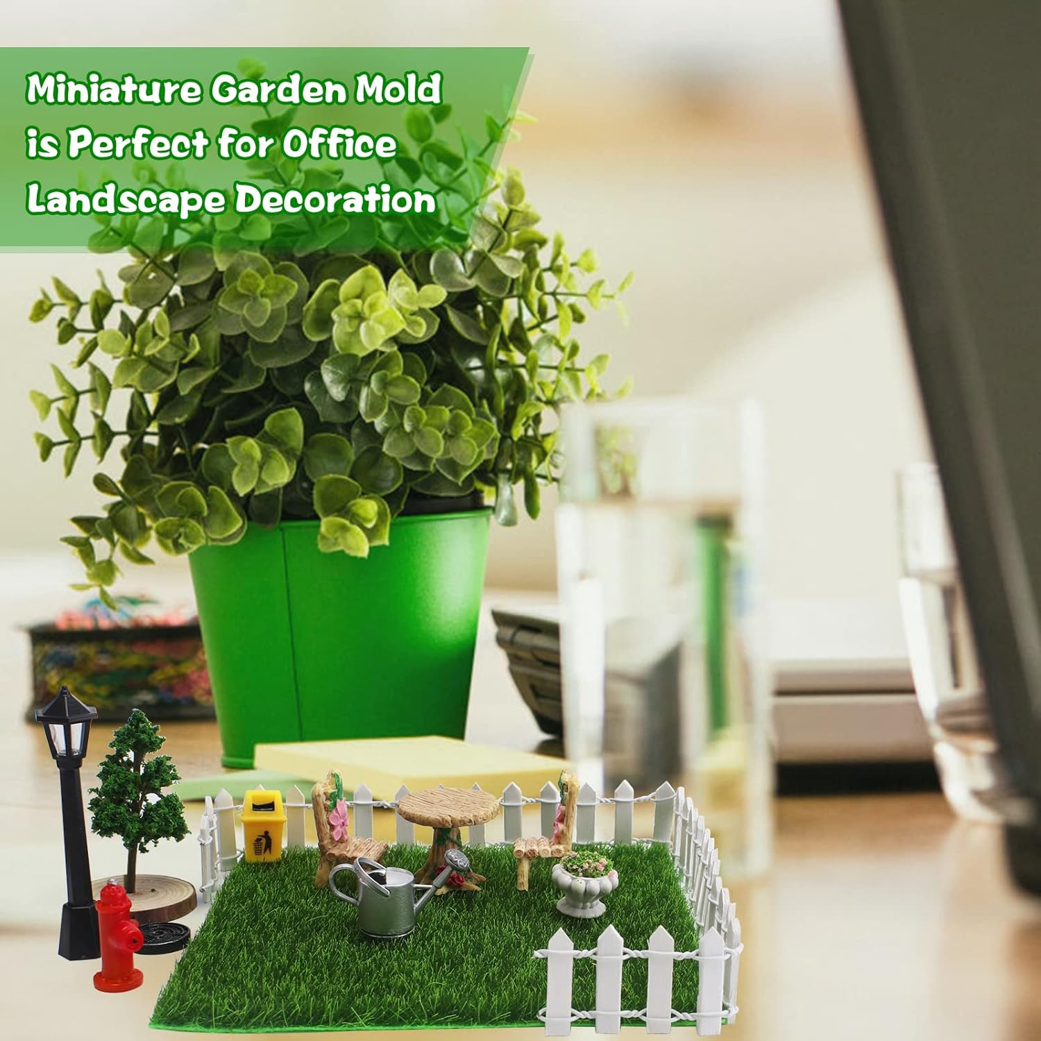 Le kit contient : Vous recevrez 17 accessoires miniatures de jardin de fées, dont 1 herbe, 4 clôtures, 1 arbre, 3 ensembles de tables et de chaises, un balai, un couvercle de puits, une bouche d’incendie, un lampadaire, une poubelle, 1 pot de fleurs et 1 arrosoir Des designs conçus pour répondre à vos multiples besoins décoratifs.