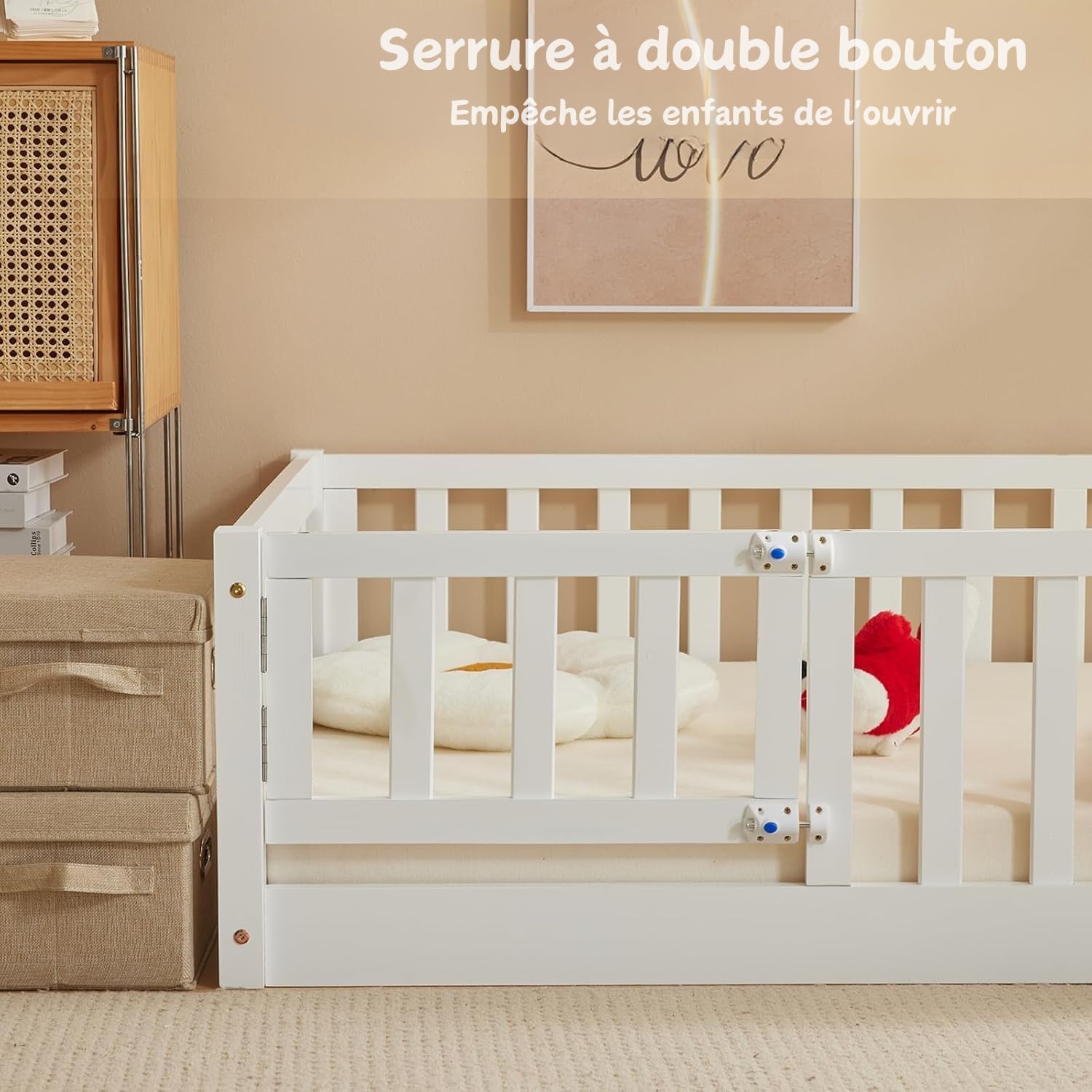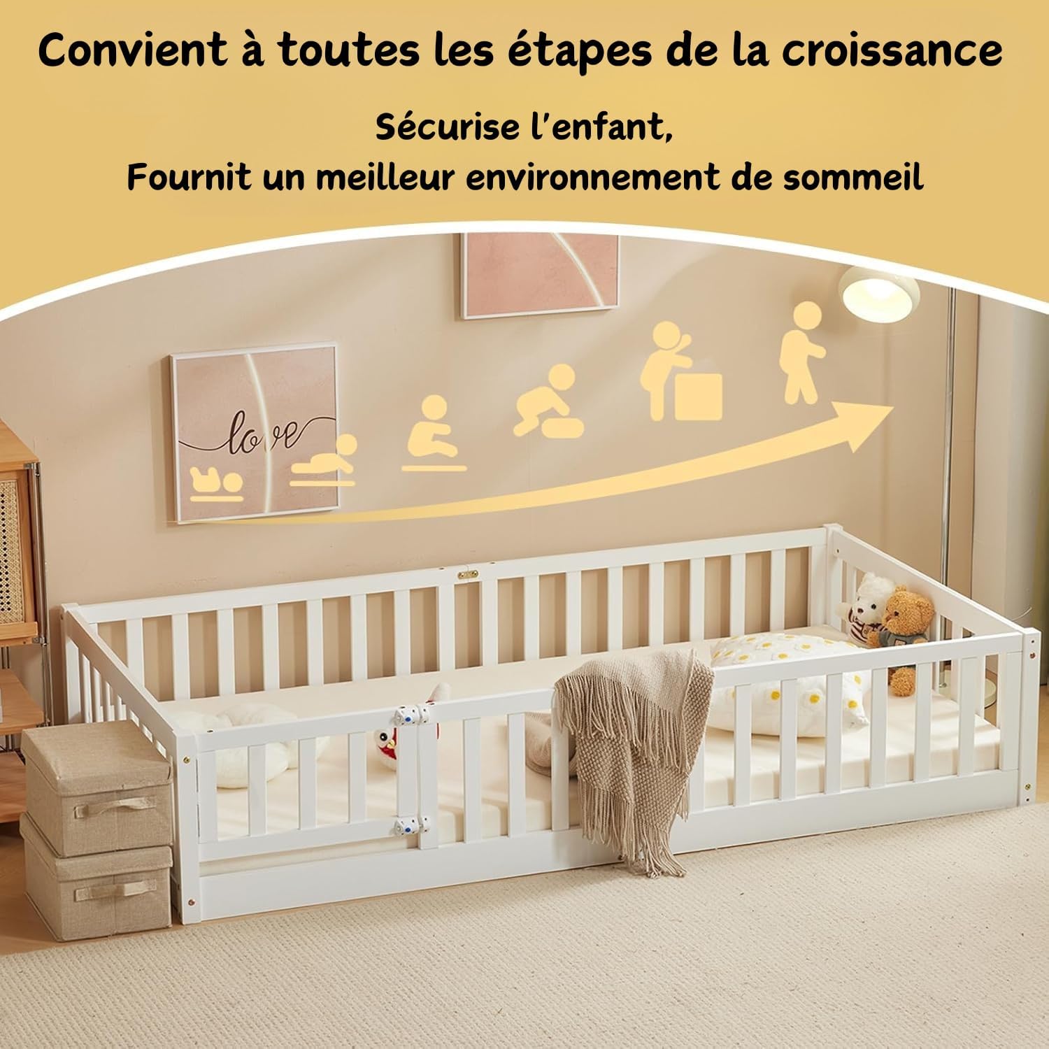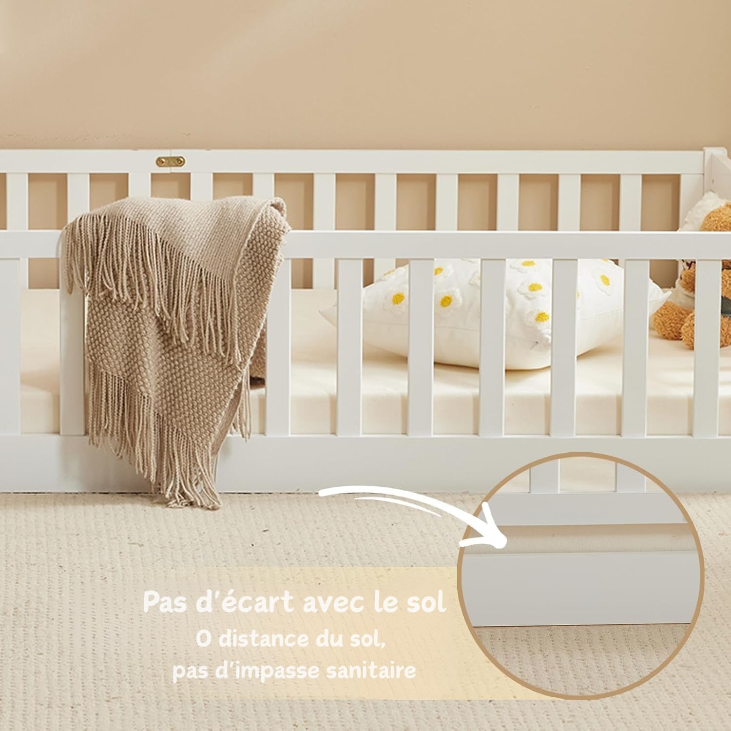 【PROTECTION INTÉGRÉE CONTRE LES CHUTES】Des barrières latérales surélevées protègent efficacement des chutes sans restreindre les mouvements. Votre enfant dort en sécurité dans son lit bébé au sol, pour la tranquillité des parents.