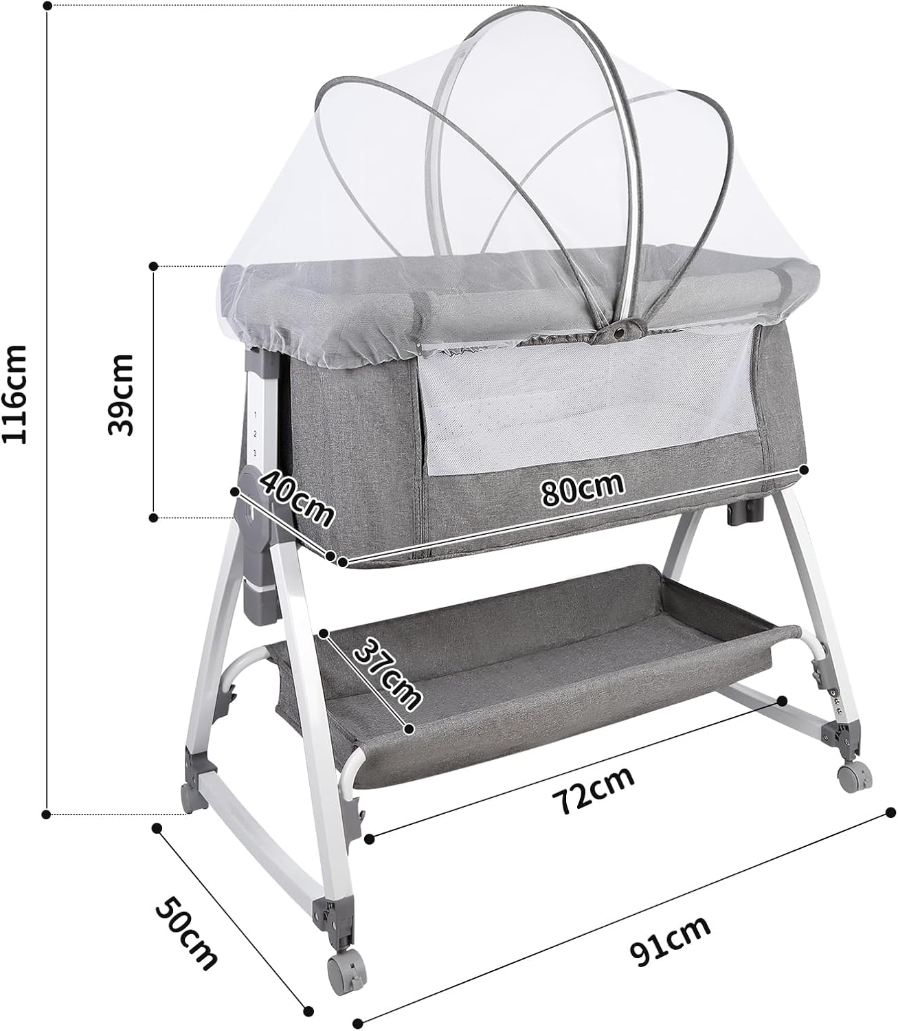 【Réglable en hauteur et en angle: les côtés du couvre – lit peuvent être inclinés de 10° pour éviter le reflux et les vomissements. Les sacs de rangement des deux côtés peuvent contenir la plupart des affaires de votre bébé. Pour s’adapter aux lits de différentes hauteurs, ce lit bébé dispose de 6 hauteurs réglables.