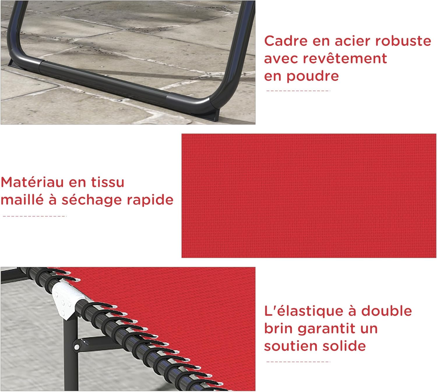 ÉLÉGANT BAIN DE SOLEIL : bain de soleil transat coloris rouge style contemporain avec laçage élastique très élégant – Convient autant à un usage extérieur (jardin, piscine, camping, plage) comme intérieur (véranda, patio)