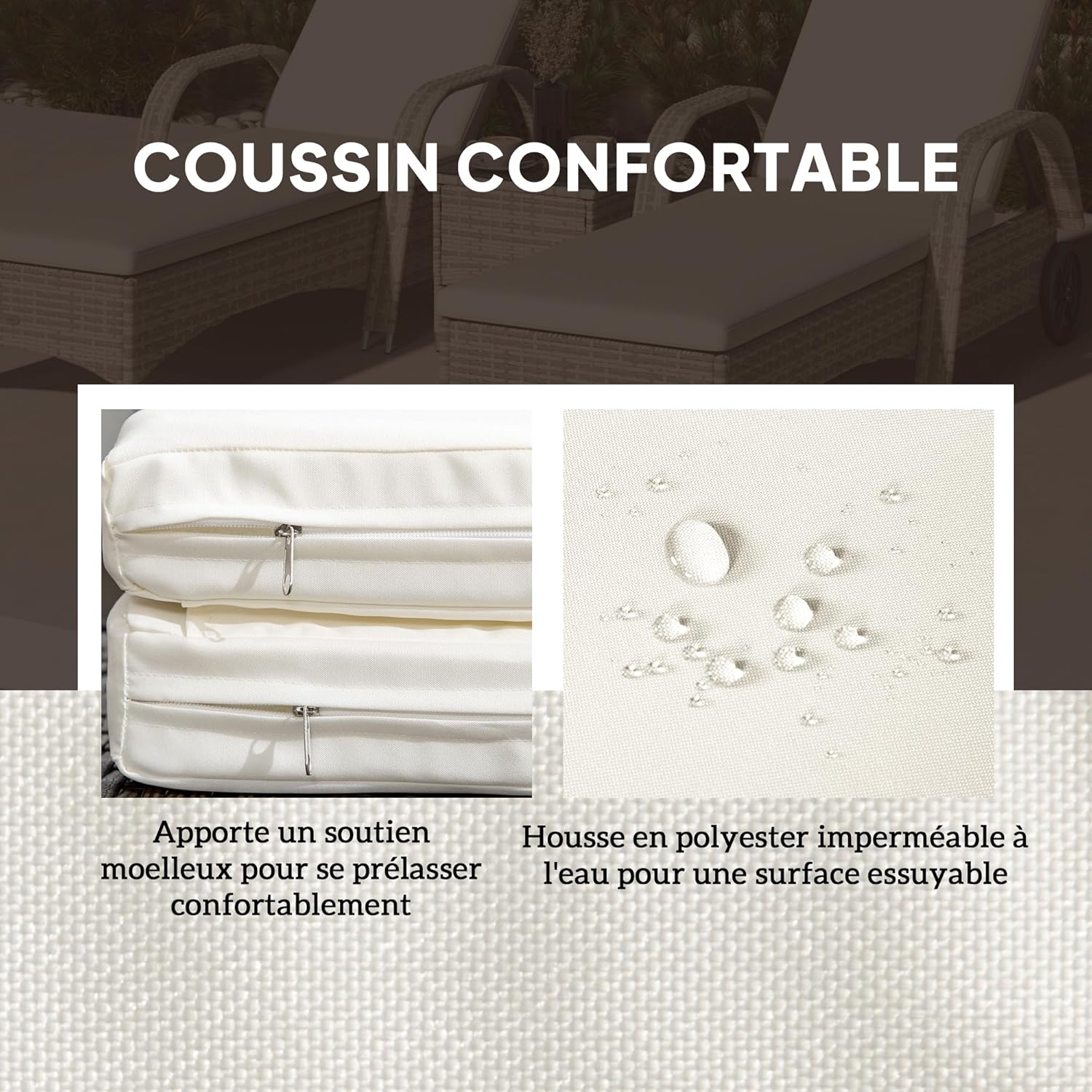 GRAND CONFORT : transat de jardin extérieur en garnissage mousse haute densité 800 g/² du matelas avec housse polyester agréable au toucher