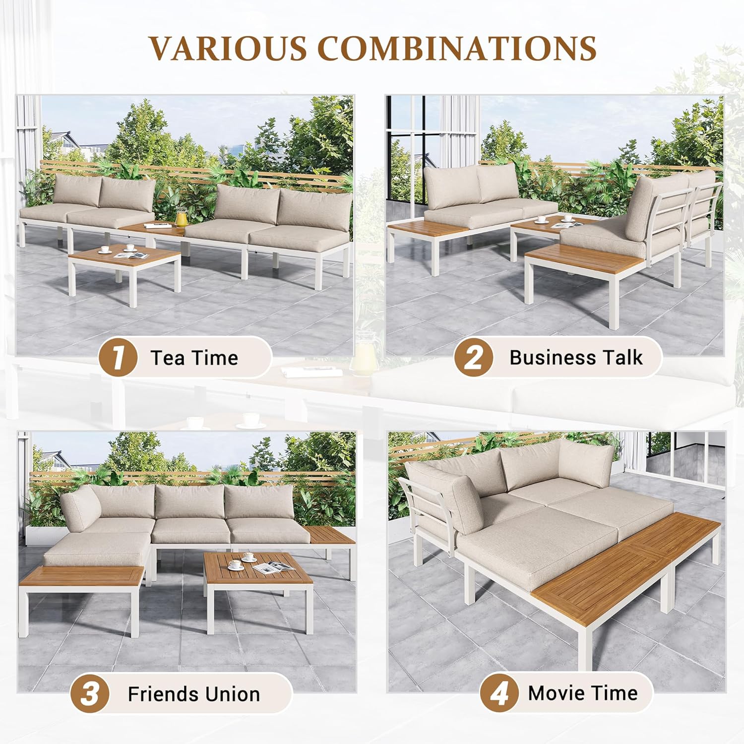 Bois de haute qualité : La surface de la table basse et des accoudoirs des chaises est composée de panneaux de bois synthétique, qui non seulement rehaussent l’aspect naturel du meuble, mais offrent également une excellente résistance à l’humidité et à l’eau.