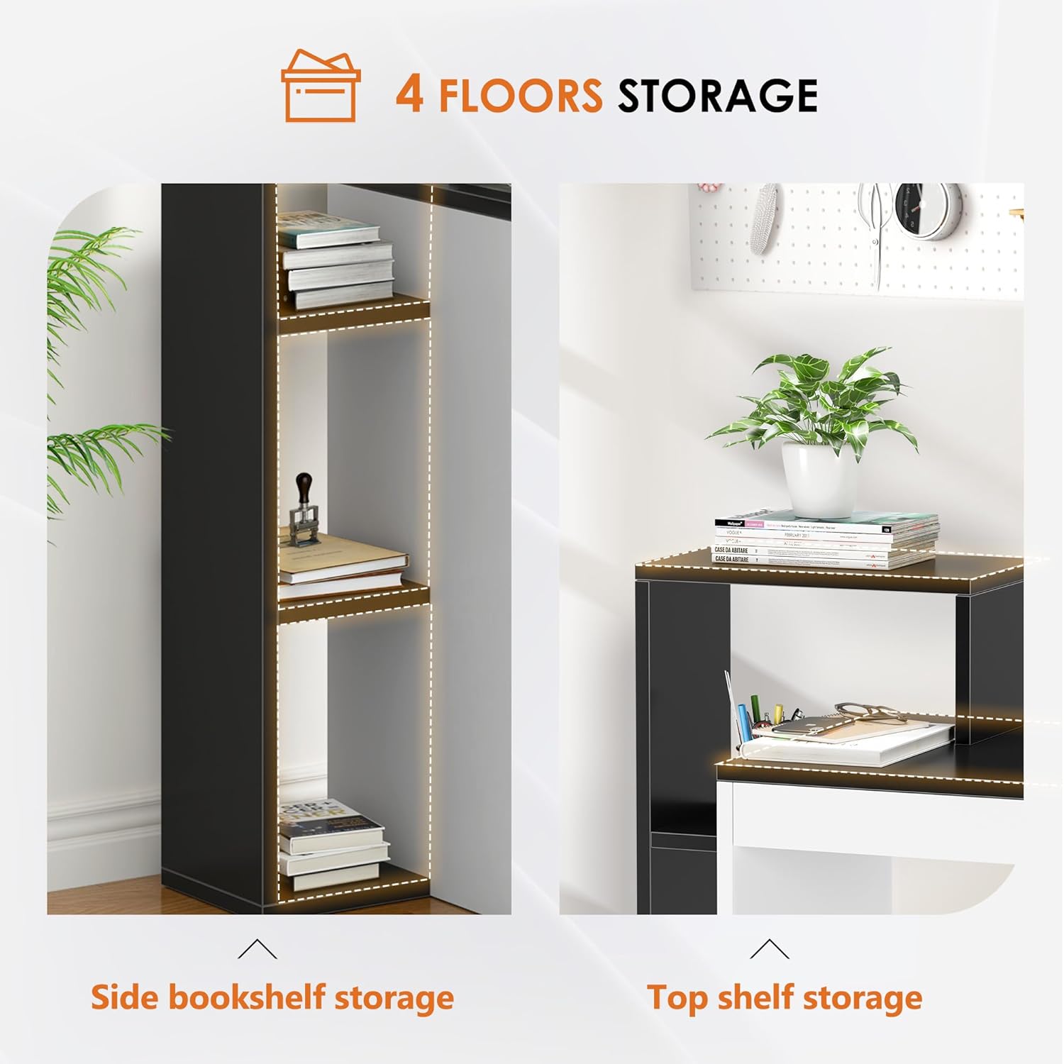 Gain de Place:L’étagère à trois couches du bureau peut être utilisée pour placer des livres et des plantes vertes sans occuper d’espace de bureau. Le cadre extérieur doit être installé à l’avance sur le côté gauche ou droit et des trous peuvent être réservés au besoin.