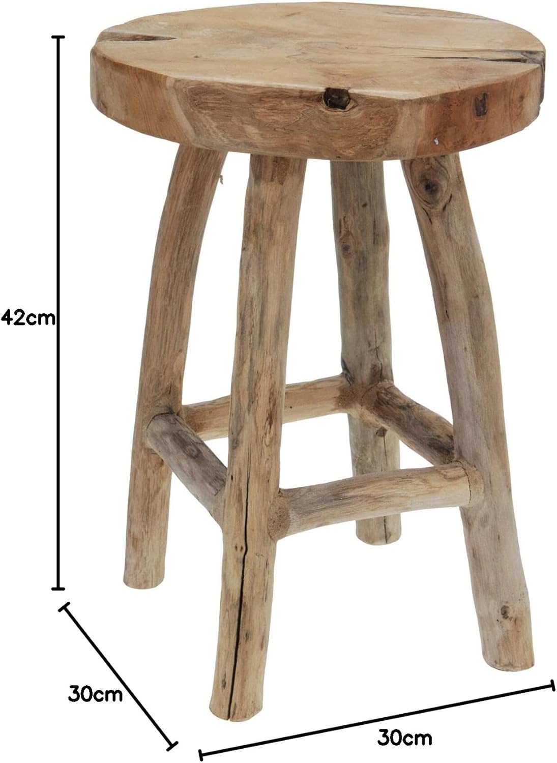 Tabouret en teck non traité 30 cm avec 4 pieds – Fabriqué à la main