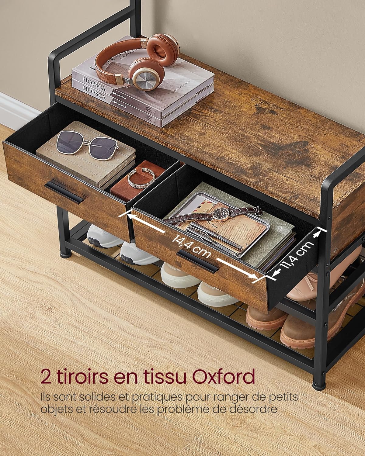 [Multi-fonction 6 en 1] Ce porte-manteau comprend des crochets, un banc, une range-chaussures, des tiroirs, une barre de suspension et une étagère de rangement pour optimiser l’espace et vous aider à créer une entrée organisée et fonctionnelle