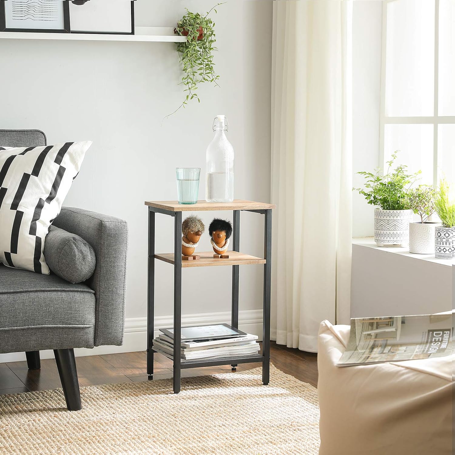 Ne laissez pas de petits coins vides ; avec cette table basse compacte mais dotée de 3 étagères spacieuses, vous pourrez profiter de l’espace entre le canapé et le fauteuil ou celui entre le lit et le mur
