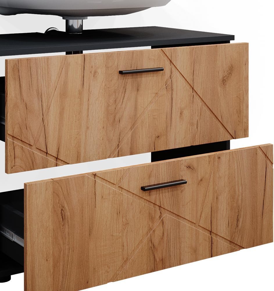 Le meuble sous lavabo avec tiroirs dispose de deux grandes ouvertures de ventilation et d’un espace de stockage généreux.
