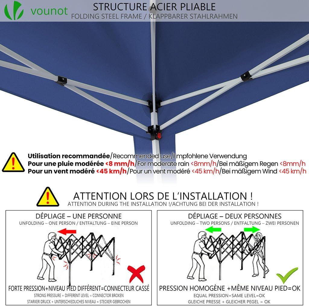 FACILE À INSTALLER – Notre tonnelle de jardin 3x3M est vraiment facile à monter ou démonter grâce à son système pliable ! Quelques minutes sont nécessaires seulement et de plus une fois démontée, la tonnelle sera très compacte et facile à ranger !