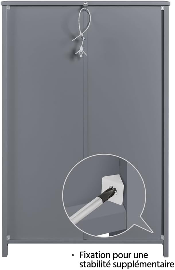 Plateau réglable en hauteur : La tablette dans le placard est réglable à 3 niveaux. Vous pouvez l’ajuster en fonction des tailles des articles. Hauteurs disponibles : 21 cm/ 27,5 cm/ 33,7 cm.